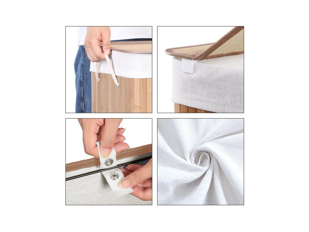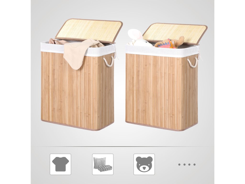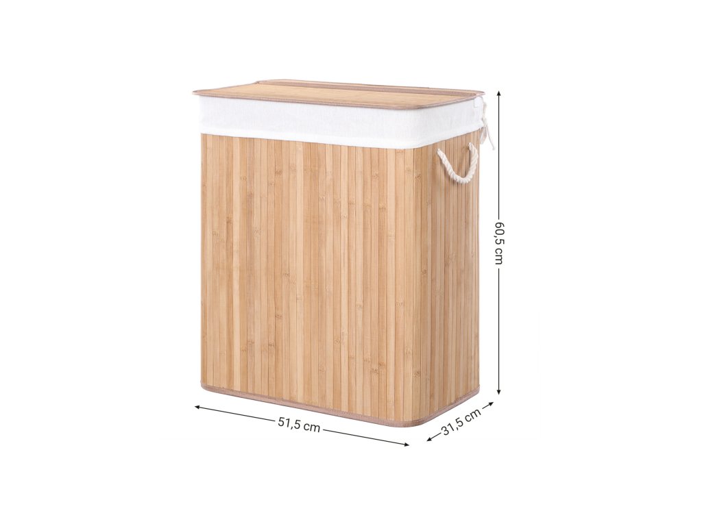 PŘIPEVNĚTE VÍKO: Díky klipové konstrukci je nyní připnutí víka na koš na prádlo otázkou několika sekund; snadno jej vyjmete, pokud chcete vyjmout vložku a přenést prádlo do pračky;STABILITA S ÚČELEM: Bambusové lamely jsou obnovitelné, odolné a přírodní, vyznačují se velkou stabilitou a vysokou pevností. Mějte v ložnici tento koš na prádlo o hmotnosti 25 kg, do kterého bez problémů uložíte džíny, svetry a zimní bundy!.MALÉ DETAILY, VELKÝ ÚČINEK: Nemusíte nosit plnou náruč oblečení do pračky; jednoduše vyjměte vložný sáček z koše a snadno se projděte; boční úchyty jsou opravdu užitečným pomocníkem, pokud potřebujete koš přemístit;DOPLNĚK, KTERÝ MUSÍTE MÍT: Tento koš na prádlo s víkem z bambusových lamel o rozměrech 51,5 x 31,5 x 60,5 cm (d x š x v) nabízí objem 100 l, do kterého schováte špinavé oblečení a udržíte svůj domov v dokonalém pořádku.CO ZÍSKÁTE: Bambusový koš na prádlo SONGMICS o objemu 100 l, do kterého se vejde všechno vaše špinavé oblečení a ložní prádlo, aby byl váš den praní hračka.| Kategorie: | Koše na prádlo |