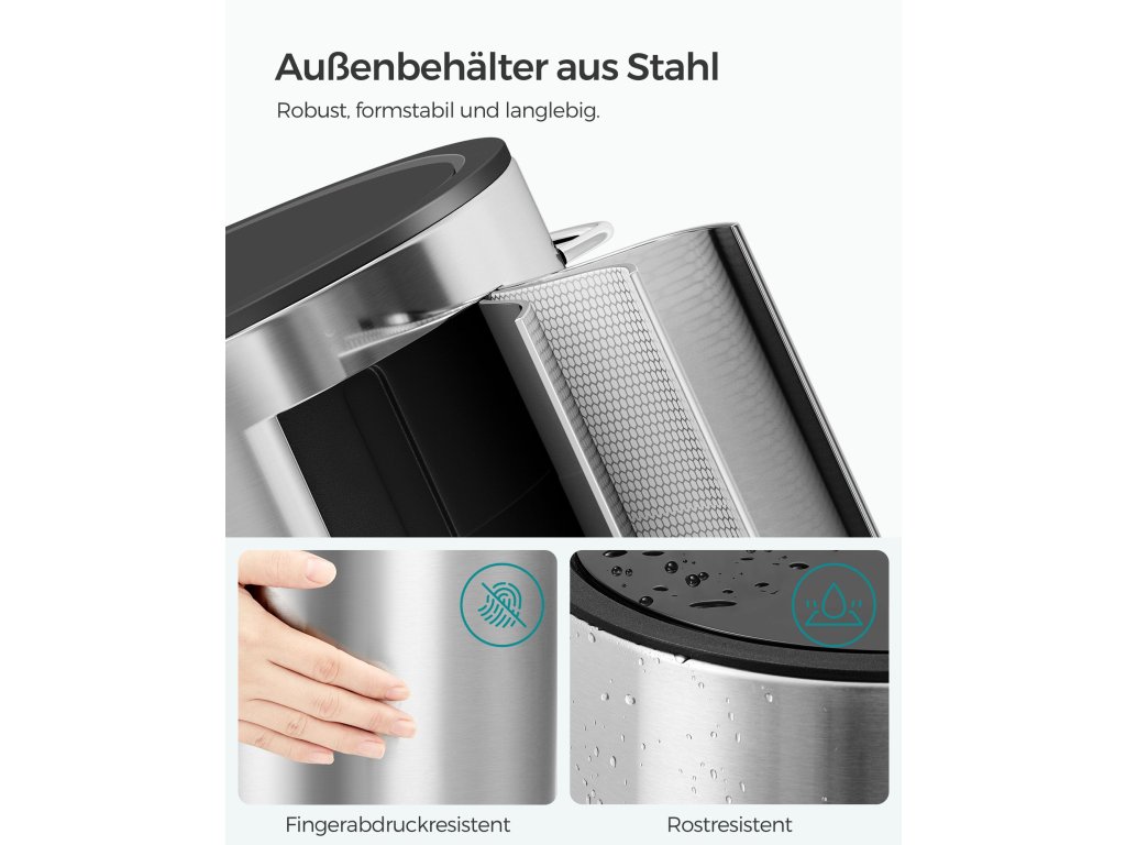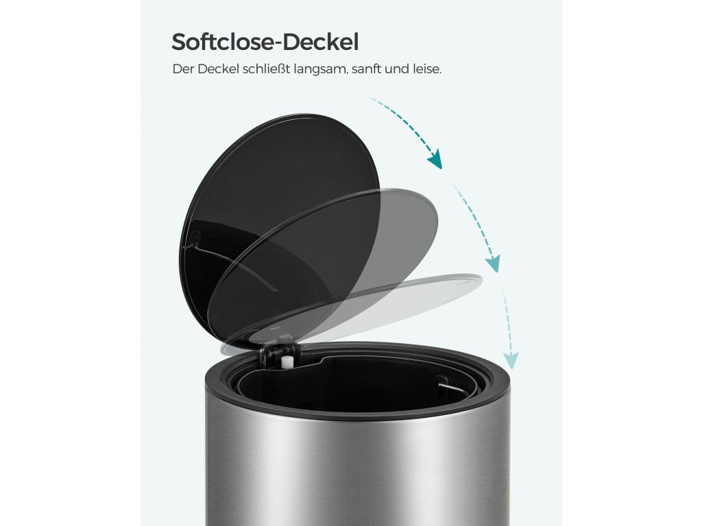 Kosmetický koš, 3 litry, odpadkový koš do koupelny, malý odpadkový koš s víkem, tiché zavírání, vyjímatelný plastový vnitřní kbelík, do koupelny, kanceláře, ocel, stříbrná/černá.