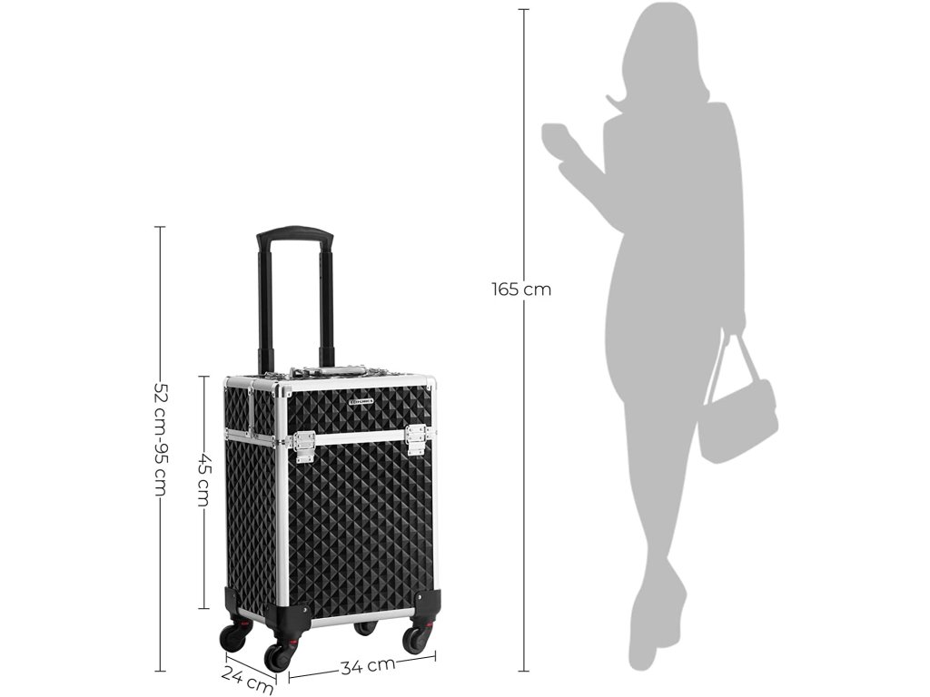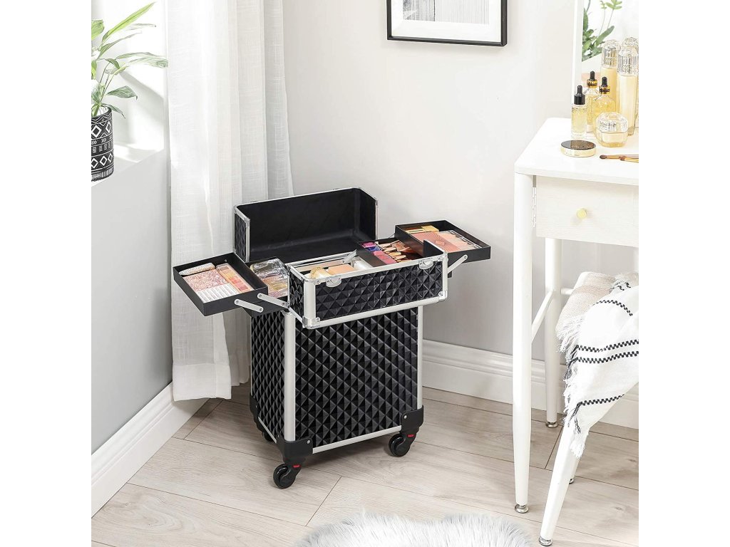 PRO CESTOVÁNÍ? PŘESNĚ TAK: Cestujete často služebně? Vezměte si s sebou toto pouzdro na líčidla! Díky stylovému vzhledu, teleskopické rukojeti a 4 univerzálním kolečkům. upoutá všechny pohledy a získá si obdiv ostatních.NEZÁVADNÝ DÁREK: Ať už chce váš blízký dosáhnout bezchybného make-upu na cestách, nebo vaše kamarádka vizážistka potřebuje odjet na služební cestu. tento kosmetický kufřík je perfektní dárek, který je nikdy nezklame.KVALITA, NA KTEROU SE MŮŽETE SPOLEHNOUT: Tento kufřík na líčidla, vyrobený z prvotřídního dřeva, odolného ABS plastu a robustního hliníkového rámu a rukojeti, vám bude sloužit dlouhá léta.PO OTEVŘENÍ VÍKA... budete překvapeni množstvím úložného prostoru uvnitř! Do 4 výsuvných přihrádek uložíte rtěnky, oční stíny a další věci; velká spodní přihrádka pojme fén a šaty;