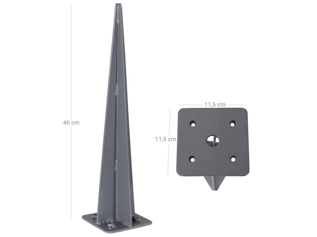 Kovová kotva pro sloupky, šedá stříkaná kotva do země, vjezdová kotva 46 X 11,5 X 11,5 cm.