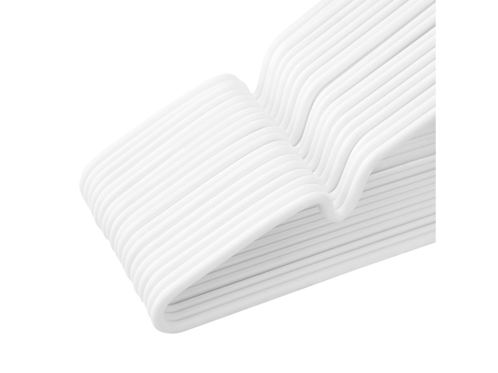 SONGMICS Kovová ramínka, 20 balení protiskluzových ramínek na oblečení, tloušťka 0,4 cm, úspora místa, otočné háčky o 360°, na kabáty, košile, halenky, šaty, topy, potah PVC, bílá CRI33WT20
