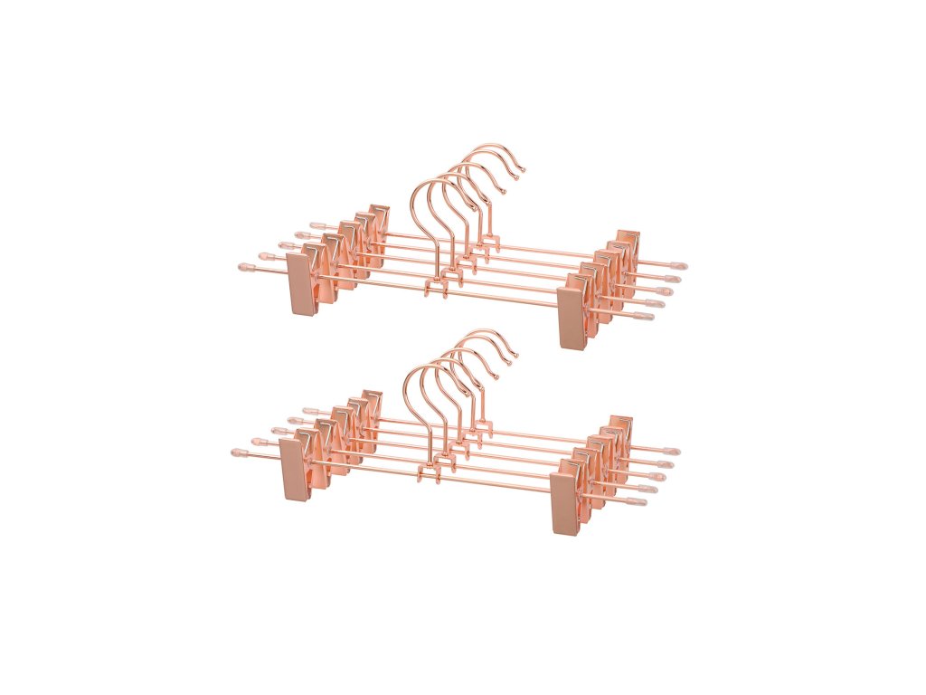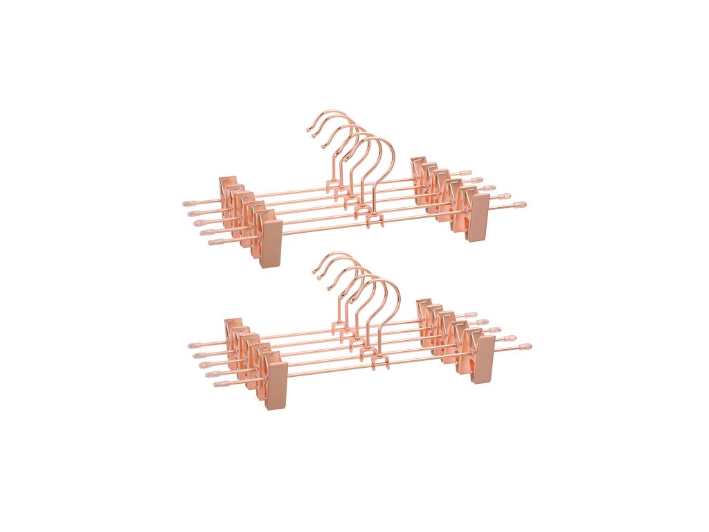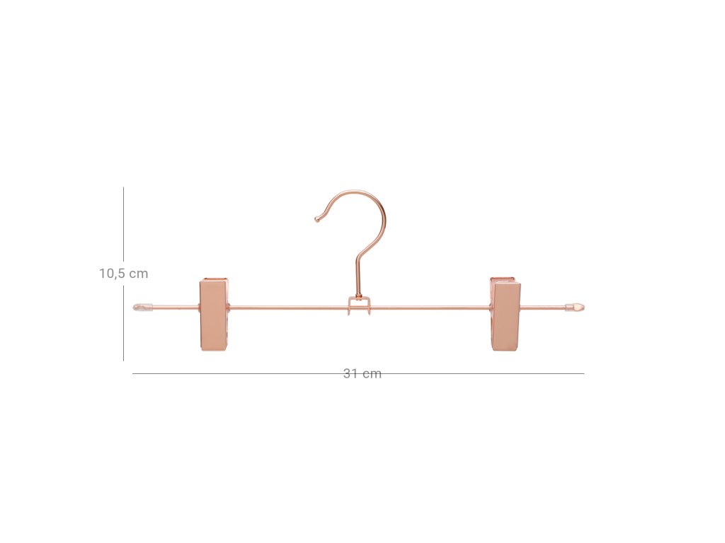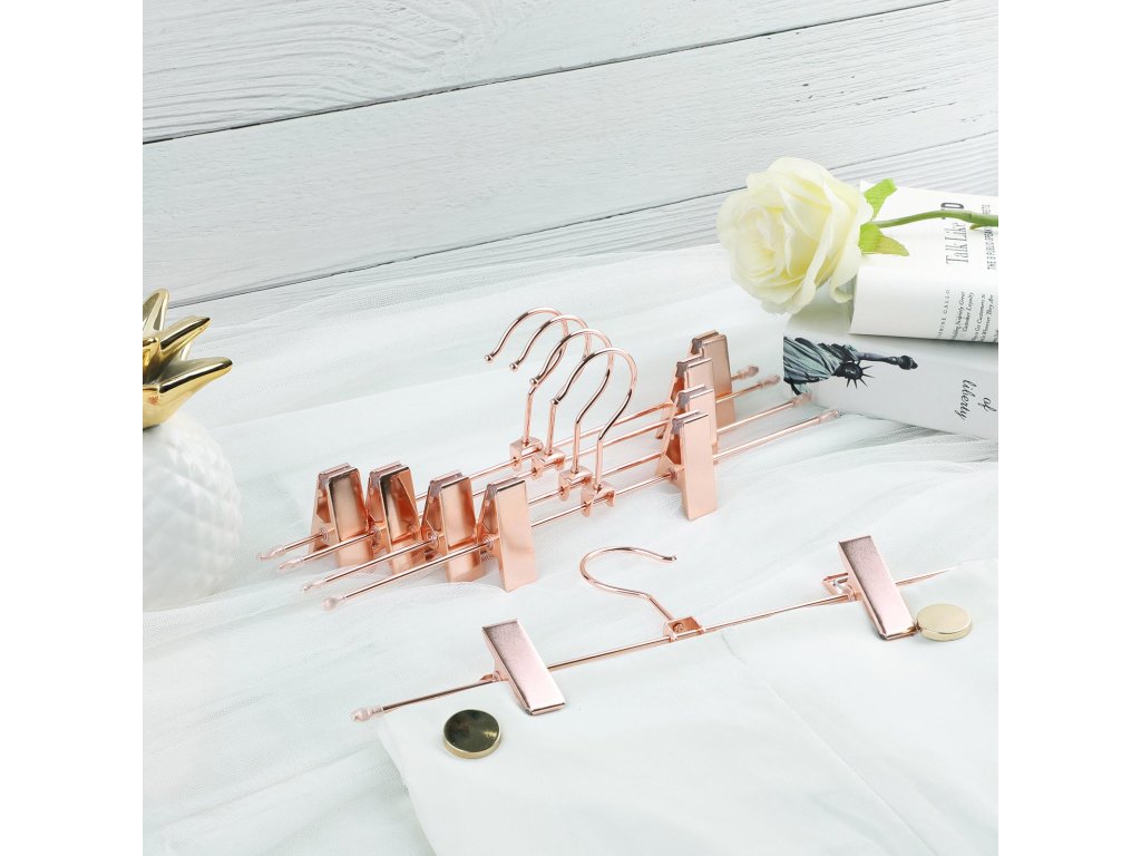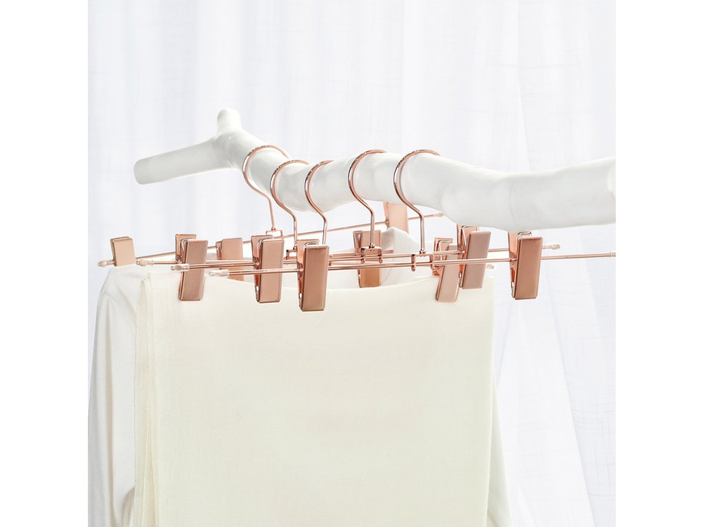 Wat fonkeling in uw hok: Om uw garderobe binnenkort wat meer glans te geven, hebben wij deze elegante kleerhangers in roségoud ontworpen. Díky délce 31 cm a praktickým klipům jsou ideální pro broeken a rokken.Eenvoudig, elegant, echt sterk: de verchroomde metaaldraad ziet er niet alleen bijzonder stijlvol uit, hij is ook roestbestendig en kan een gewicht tot 3 kg dragenSlank en wendbaar: De hangers zijn bijzonder slank ontworpen, zodat de ruimte in de kast optimaal kan worden benut. Bovendien kunnen ze gemakkelijk 360° worden gedraaid.Alles hangt op zijn plaats: Om te voorkomen dat een pas gewassen broek of uw dure zijden rok op de grond belandt, hebben deze hangers twee stevig vastgrijpende clips. U kunt er zelfs dunne, delicate kledingstukken zoals ondergoed aan ophangen.Individueel verstelbaar: De clips van deze broekhangers zijn verstelbaar zodat de breedte van de broekspijpen er niet toe doet en de hangers zijn zelfs geschikt voor kinderkleding.| Kategorie: | Šatní ramínka |