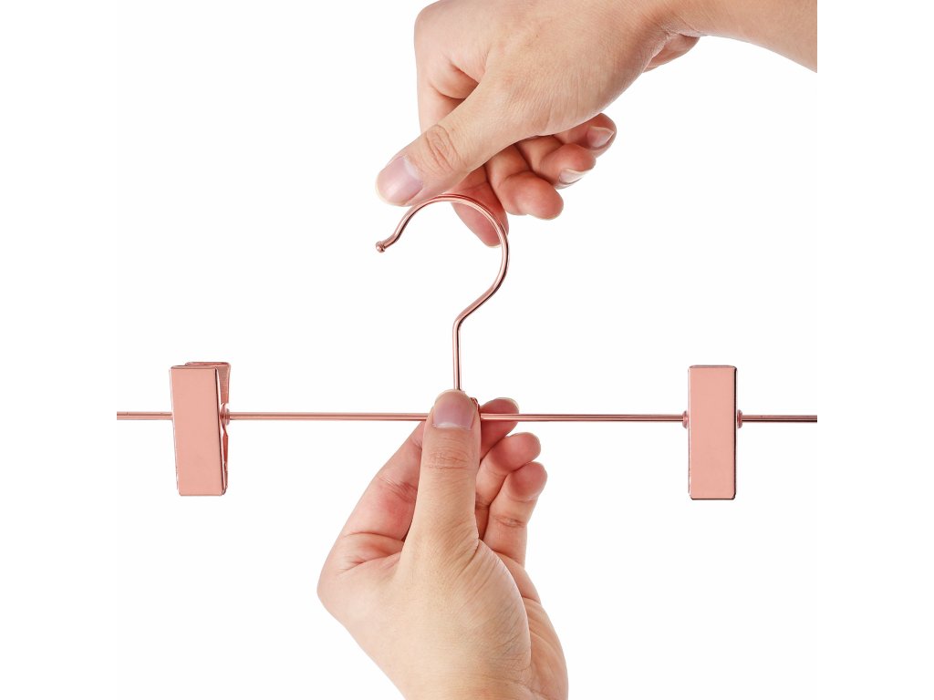 Kovové ramínko na oblečení 31 cm, 2 protiskluzové klipy na sukně, kalhoty, spodní prádlo, robustní ramínka, úspora místa, nerezavějící, otočné o 360° balení 10 ks.