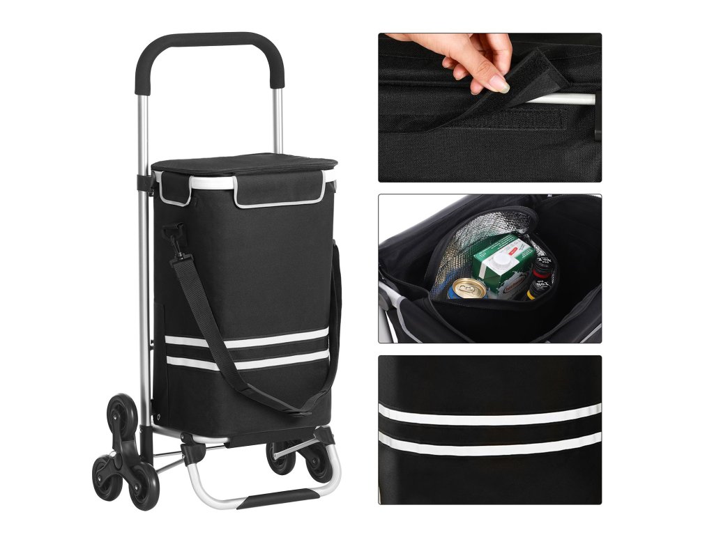 Skládací nákupní vozík s chladicí přihrádkou černý.