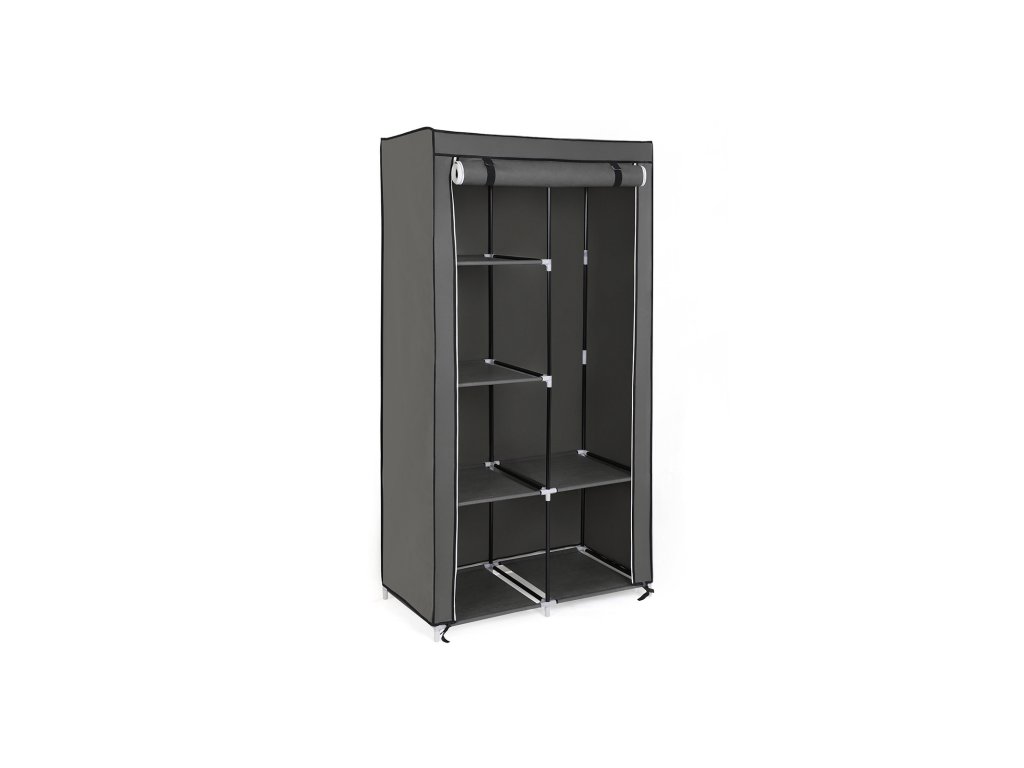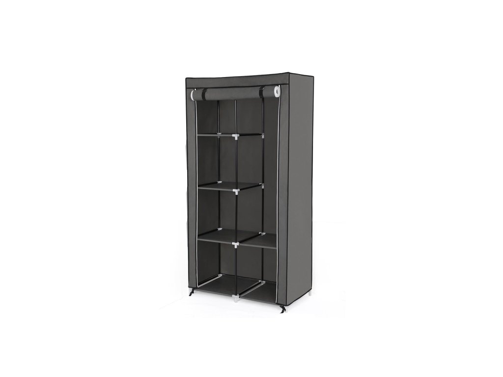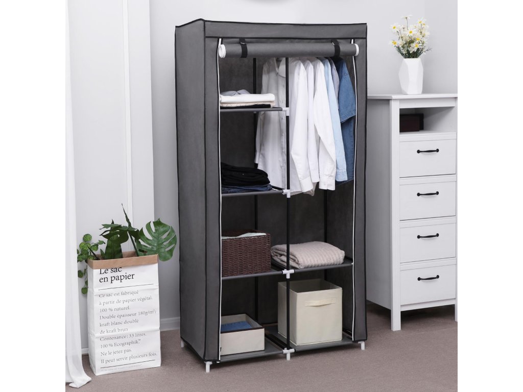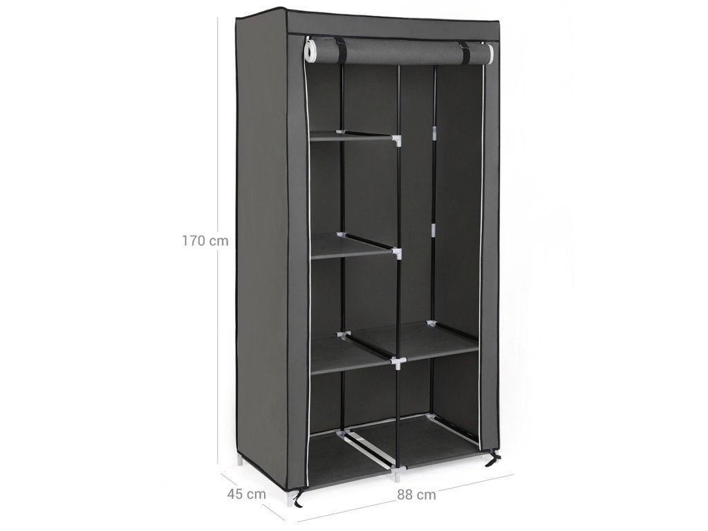 Látková šatní skříň, organizér na oblečení se 2 závěsnými lištami, 6 polic, přizpůsobitelný design, 88 x 45 x 168 cm, do ložnice, oddělení, šedá.