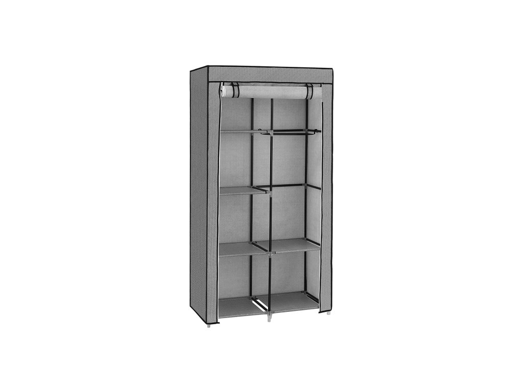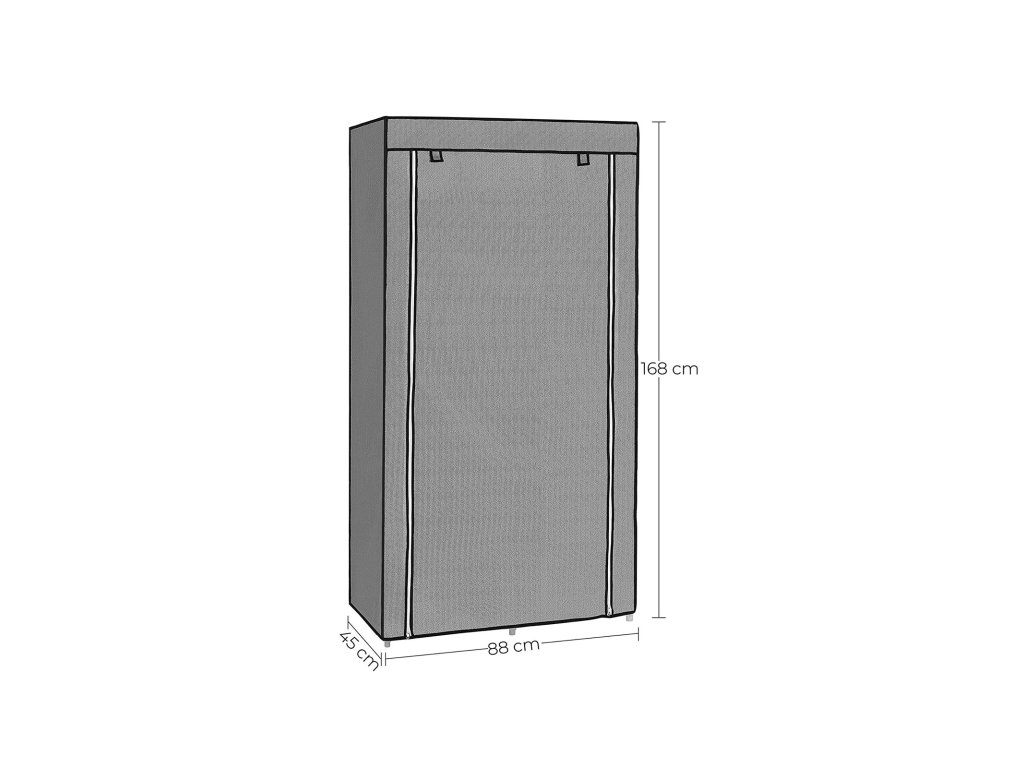 Látková šatní skříň, organizér pro ukládání oděvů, 6 polic, 2 závěsné lišty, netkaná textilie, kovový rám, 88 x 45 x 168 cm, do ložnice, šatny, se vzorem rybí kosti, šedá.