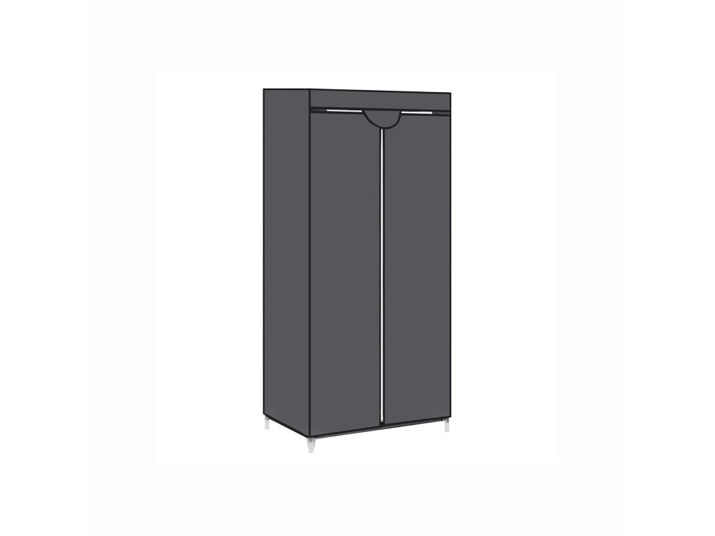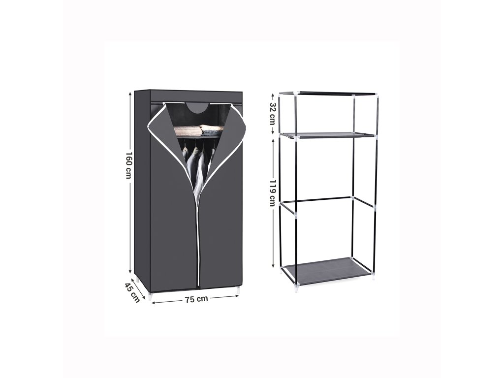 Látková šatní skříň, skládací skříň se závěsnou tyčí, jednoduchý věšák na oblečení, úložný organizér na tašky, hračky, boty, obývací pokoj, ložnice, šatna, 75 x 45 x 160 cm, šedá.