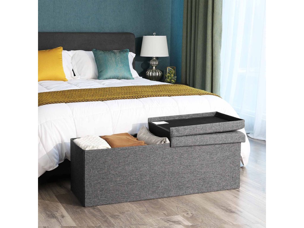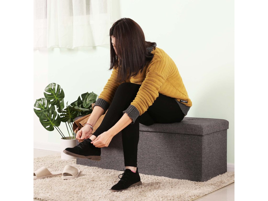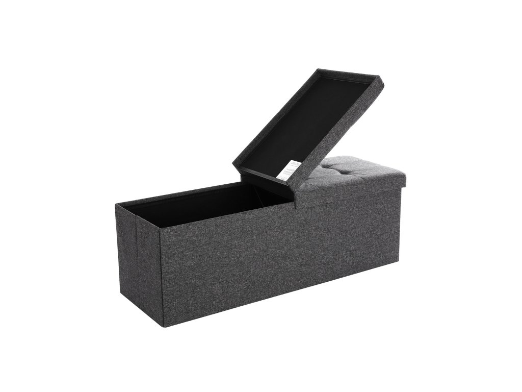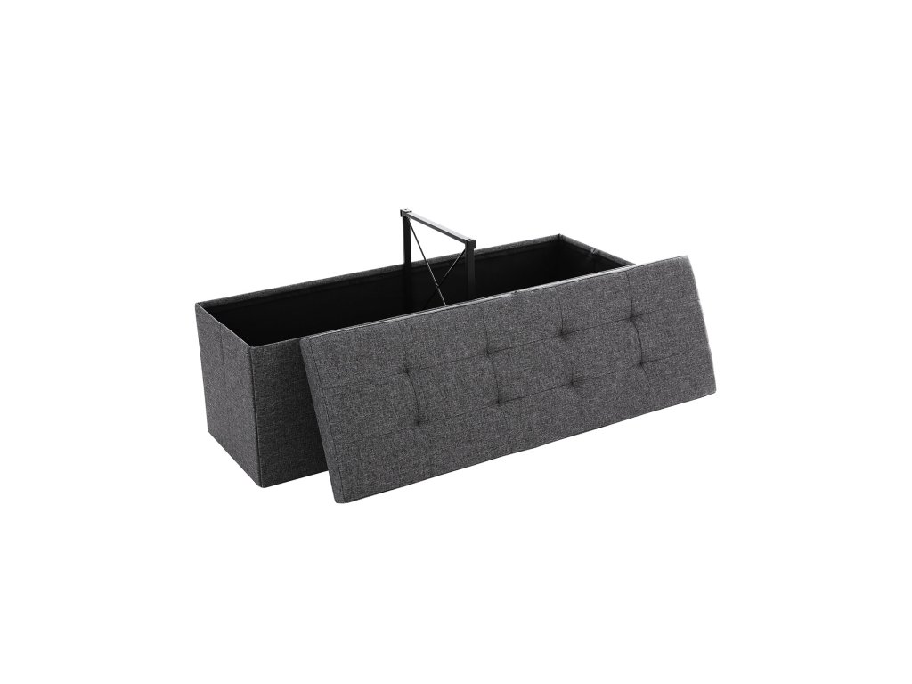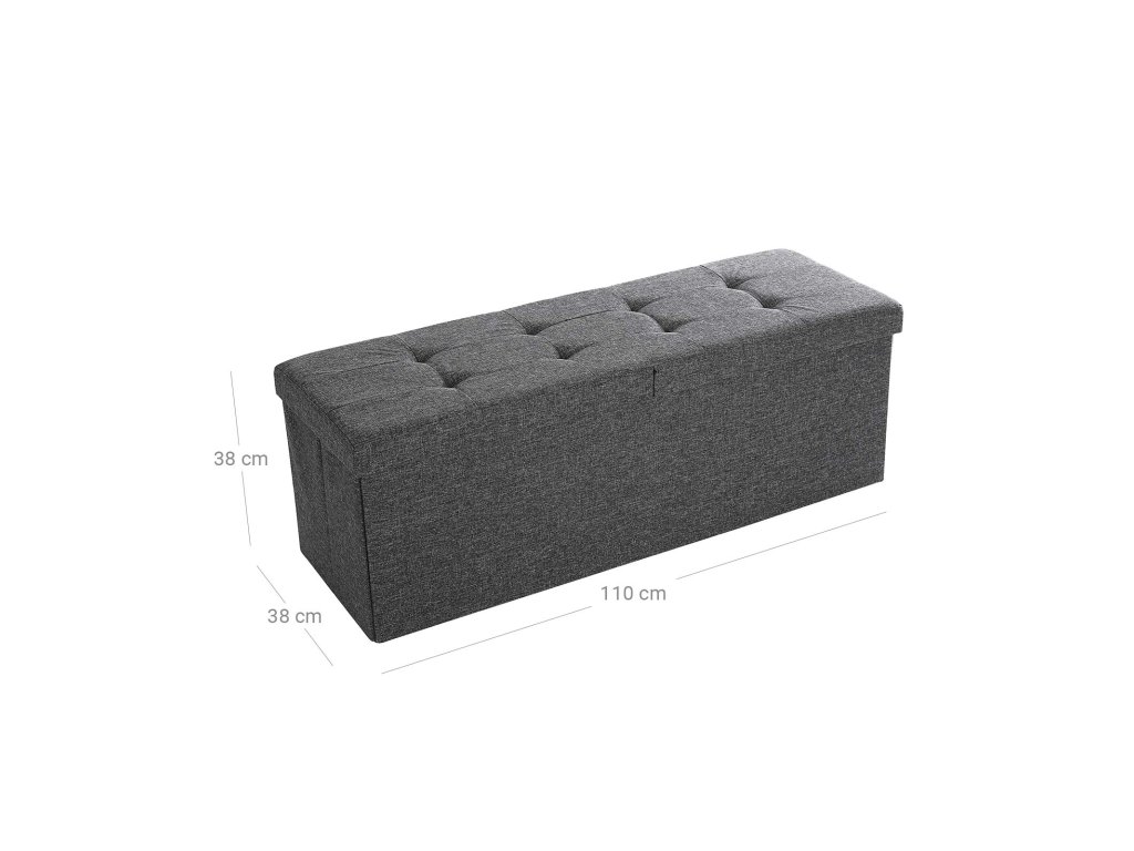 Lavice s úložným prostorem, truhla s víkem, skládací, nosnost 300 kg, 120 l, 38 x 110 x 38 cm, lněná tkanina, tmavě šedá.
