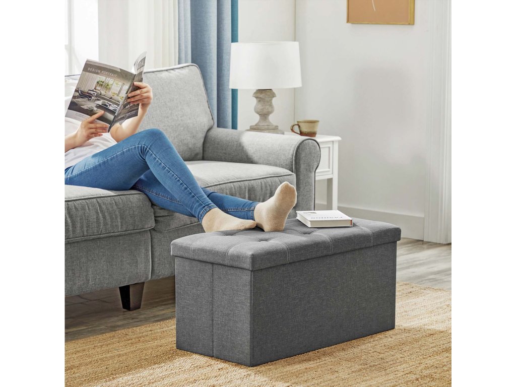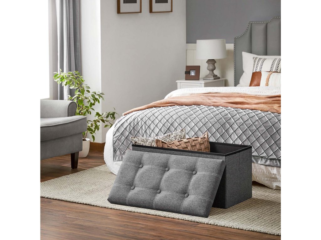 Lavice, stolička 80 litrů, skladovací box, maximální zatížení 300 kg, pro obývací pokoj, ložnici, předsíň, tmavě šedá.