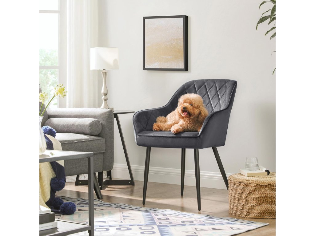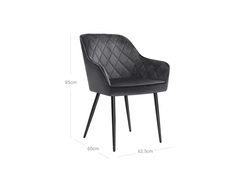 Rozšířený komfort: už žádné úzké židle! Díky 49 cm širokému sedáku a pohodlně skloněnému opěradlu a područkám se ponoříte do relaxace; 7 cm silné polstrování sedadla poskytuje větší pohodlí. Nebudete chtít vstát!;Židle a dekorace zároveň: tyto polstrované židle jsou dekorativním doplňkem vaší domácnosti. Jemné linie, hladký samet s kosočtvercovým vzorem a elegantní kovové nohy dodají těmto židlím jemný nádech do vašeho domova.Spolehlivý přítel: na rozviklané židli se nedá odpočívat. Díky robustním kovovým nohám unese každá židle až 110 kg. Vysokou stabilitu zajišťují také 4 nohy2 KROKY S 5 ŠROUBY - Instalace těchto čalouněných židlí je velmi snadná. Pomocí 5 šroubů musíte spojit nohy k sobě a připevnit je ke spodní části sedadla. To bylo.. více k tomu není třeba dodávat.