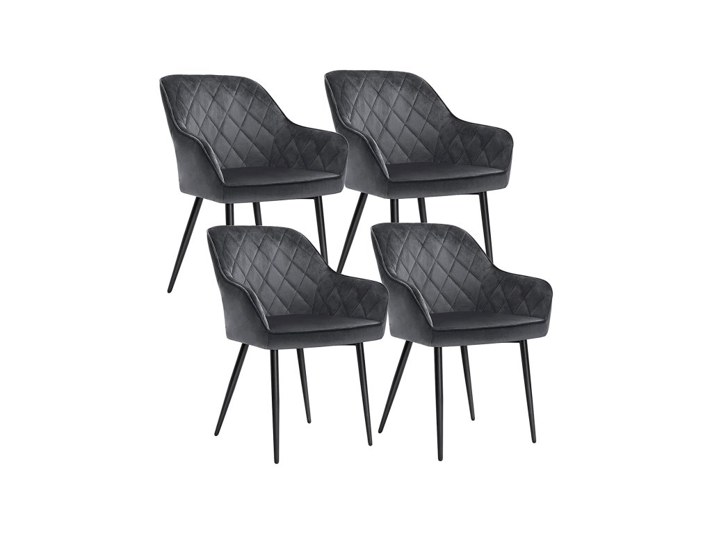 Sada 4 čalouněných židlí s područkami, šířka sedáku se sametovým potahem a nosností až 110 kg.