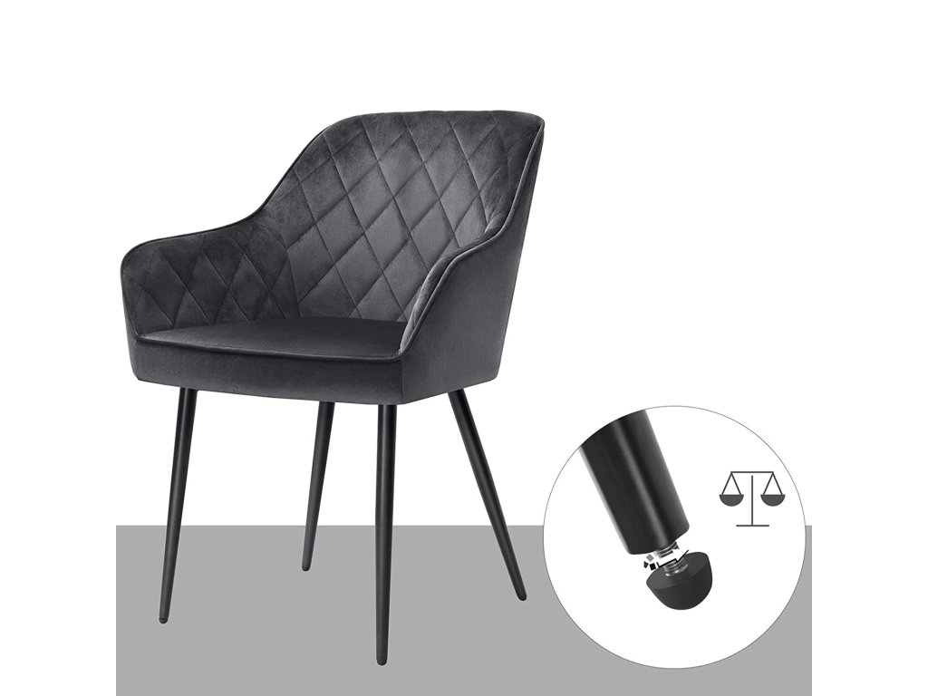 Rozšířený komfort: už žádné úzké židle! Díky 49 cm širokému sedáku a pohodlně skloněnému opěradlu a područkám se ponoříte do relaxace; 7 cm silné polstrování sedadla poskytuje větší pohodlí. Nebudete chtít vstát!;Židle a dekorace zároveň: tyto polstrované židle jsou dekorativním doplňkem vaší domácnosti. Jemné linie, hladký samet s kosočtvercovým vzorem a elegantní kovové nohy dodají těmto židlím jemný nádech do vašeho domova.Spolehlivý přítel: na rozviklané židli se nedá odpočívat. Díky robustním kovovým nohám unese každá židle až 110 kg. Vysokou stabilitu zajišťují také 4 nohy2 KROKY S 5 ŠROUBY - Instalace těchto čalouněných židlí je velmi snadná. Pomocí 5 šroubů musíte spojit nohy k sobě a připevnit je ke spodní části sedadla. To bylo.. více k tomu není třeba dodávat.