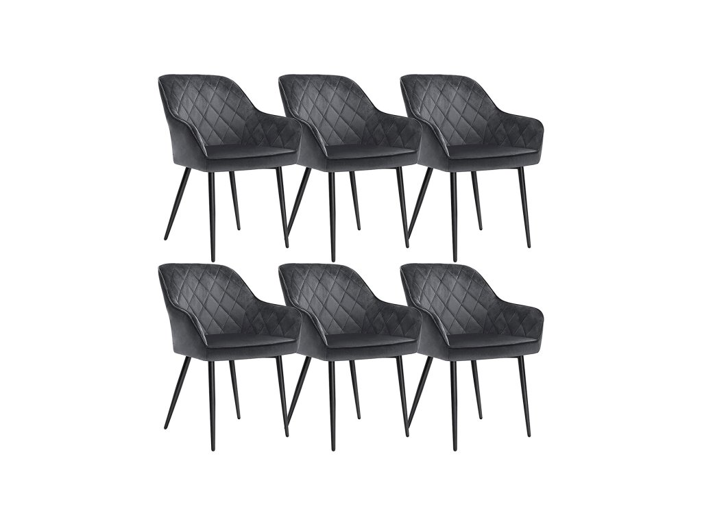 Sada 6 jídelních židlí s područkami se sametovým potahem a nosností až 110 kg.