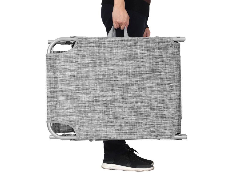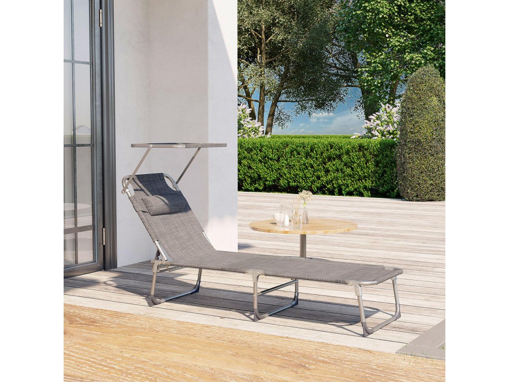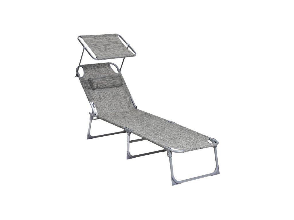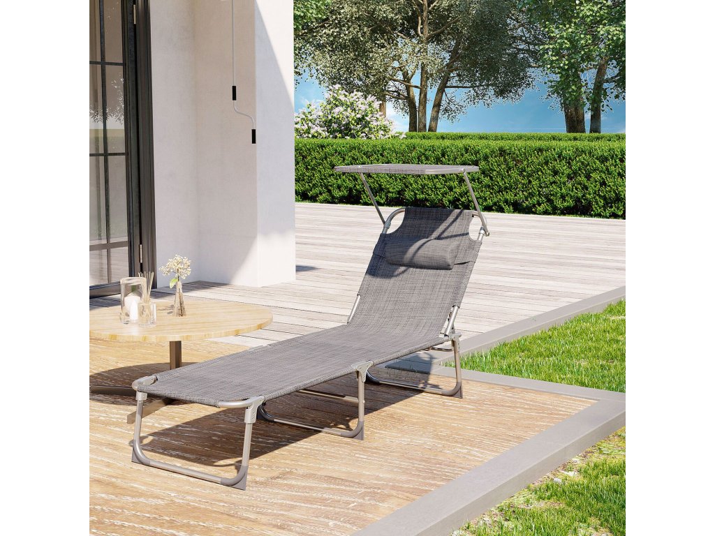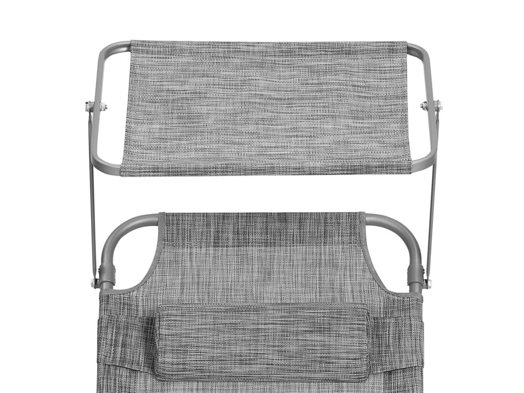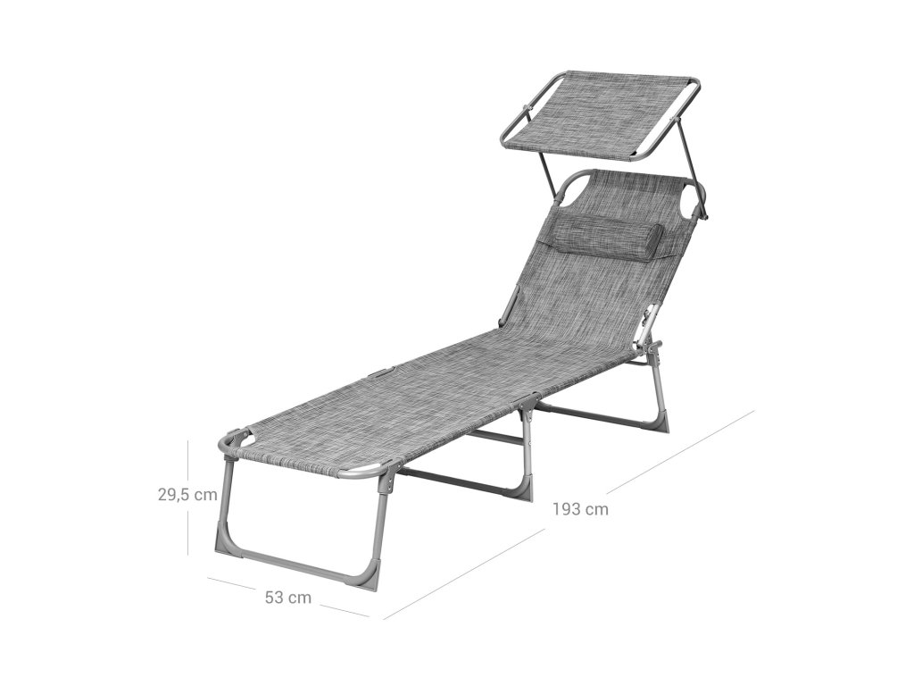 Lehátko, opalovací lehátko, polohovatelné lehátko, s opěrkou hlavy, nastavitelná opěrka zad, slunečník, lehké, skládací, 53 x 193 x 29,5 cm, nosnost 150 kg, na zahradu, šedá.