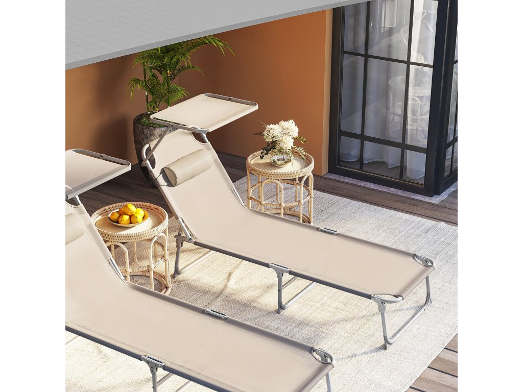 Čas na odpočinek: Po měsících tvrdé práce je čas na odpočinek na tomto prodyšném lehátku! Není třeba ho sestavovat, stačí ho rozložit, sklopit jeho opěradlo, abyste si našli svou oblíbenou polohu mezi 4, a opřít si hlavu o měkkou opěrku hlavy. Pojeďme na dovolenou!.Žádný oslnivý sluneční svit: Nechte sluneční paprsky, ať vám hřejí pokožku, ale nepálí vás do očí. Díky nastavitelné sluneční cloně tohoto křesla si můžete číst časopisy, aniž by vás oslňovaly. Když se slunce otočí, jednoduše zatlačte na sluneční clonu, abyste ji nastavili.Stojí za to se na něj spolehnout: Toto opalovací křeslo je vyrobeno z robustního kovu a syntetické tkaniny odolné proti UV záření a unese až 150 kg; zesílené konektory zvyšují její stabilitu, takže už nebudou žádné otravné viklající se židle! Stabilita a pohodlí jsou základem hry!;Snadný přesun: Strávili jste hodiny sekáním trávníku, protože vám překážel zahradní nábytek? Toto lehátko ne! Je skládací, lehké a má 2 rukojeti pro snadnou přepravu. Kam s ním půjdete? K bazénu nebo na pláž?100% dovolená: Stresujete se z práce? Relaxujte nyní při popíjení koktejlu na tomto praktickém a pohodlném lehátku!| Kategorie: | Zahradní lehátka |