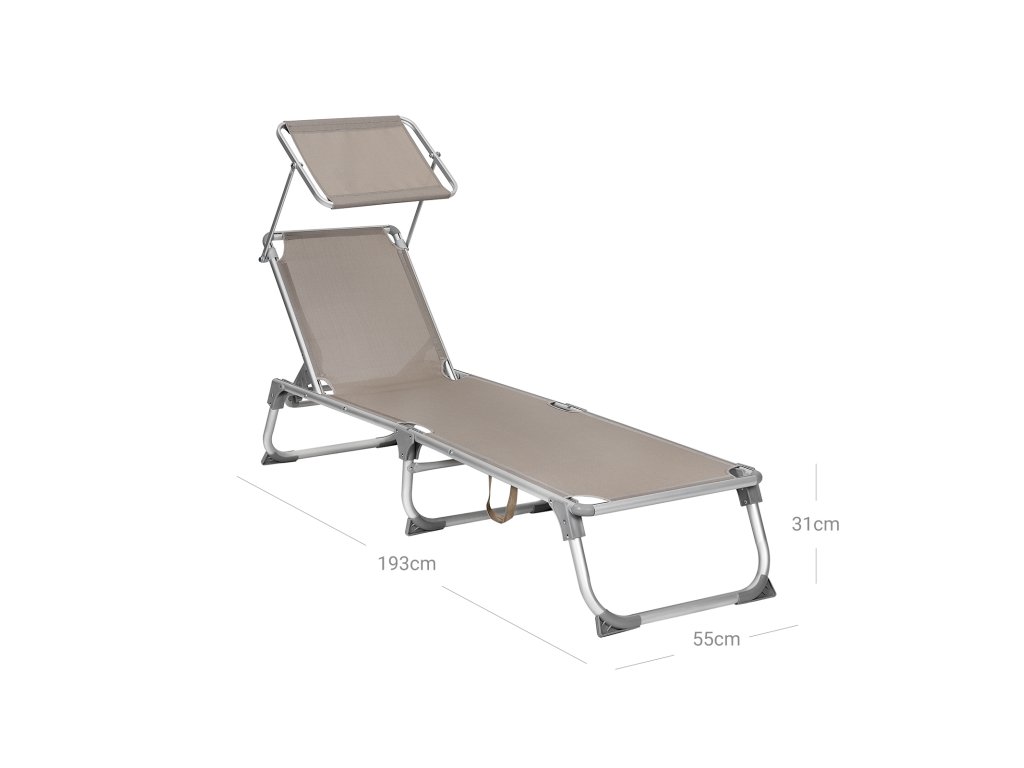 Lehátko, slunečník, polohovatelné lehátko se slunečníkem, nastavitelné opěradlo, skládací, lehké, 55 x 193 x 31 cm, nosnost 150 kg, na zahradu, terasu, barva hnědá.