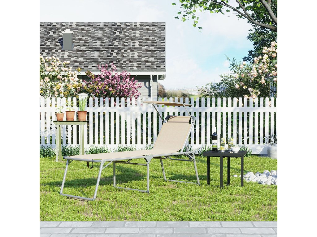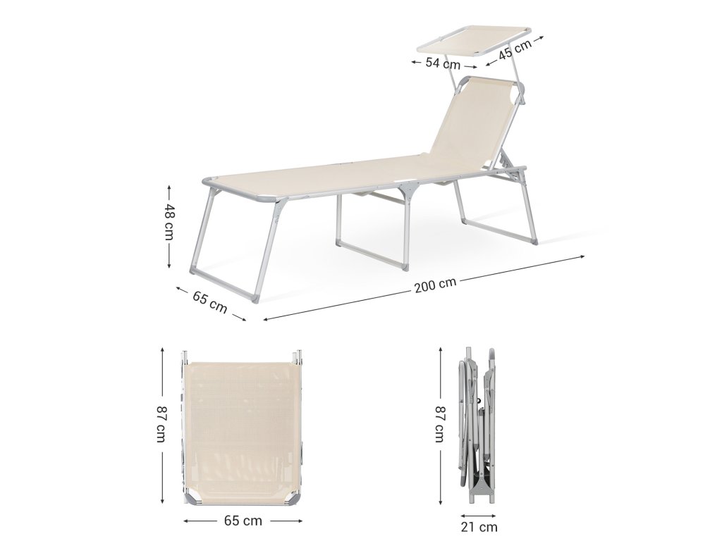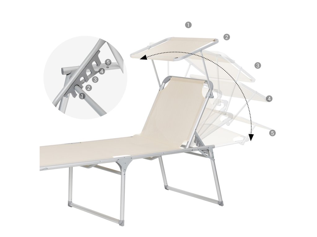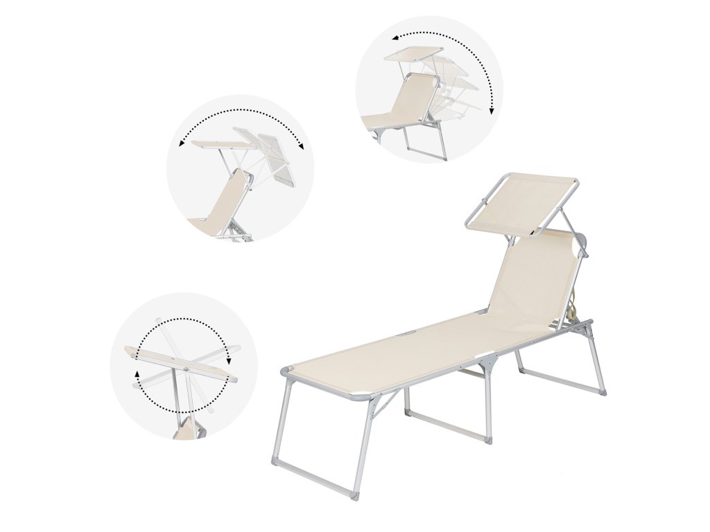 Lehátko, slunečník, velké polohovatelné lehátko, 65 x 200 x 48 cm, nosnost 150 kg, s polohovatelným opěradlem, slunečník, skládací, na zahradu, balkon, terasu, béžová.