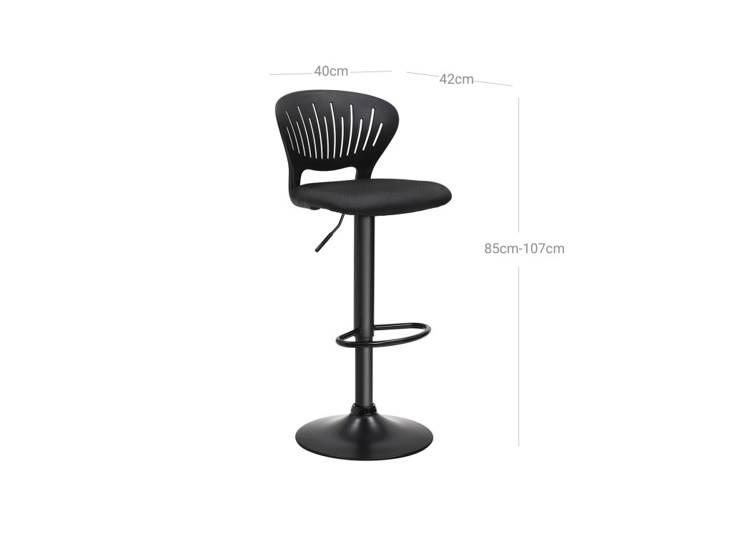Zařiďte si bar v koruně: tato sada se skládá ze 2 stylových barových židlí, které jsou kompletně v černé barvě. Opěradlo ve tvaru koruny a kulatá základna vytvoří ve vašem barovém prostoru moderní lounge atmosféru.Přizpůsobivost: vysoké stoly v jídelně jsou moderní. Je však třeba k nim najít vhodné barové židle. Naše barové židle jsou výškově nastavitelné (85-107 cm), a proto jsou vhodné pro mnoho barových stolů.NA SKALÁCH: Není nic horšího než sedět v zatuchlém baru na ulepené židli a popíjet koktejl bez ledu. Za nápoje neneseme odpovědnost. Naše barové židle vám poskytnou pohodlný pocit díky dobře polstrovanému sedáku, podnožce, prodyšné síťovině a výřezům na opěradle.Šroubovací ovladač? K montáži těchto barových židlí nepotřebujete "šroubovák", tj. šroubovák. Stačí pouze utáhnout 8 šroubů pomocí imbusového klíče. Slavný koktejl, šroubovák, si pak můžete dopřát sami.