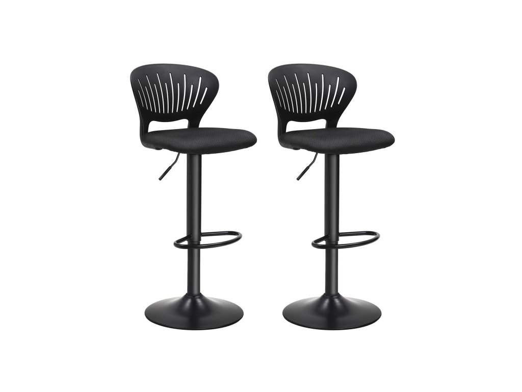 Barové židle, výškově nastavitelné s opěradlem ve tvaru koruny, otočné o 360°, pohodlné polstrované sedadlo, kuchyňský bar, černý sada 2 kusů.