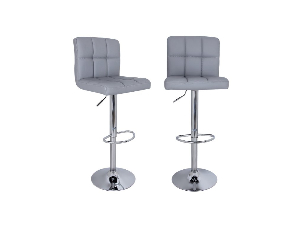 Sada 2 barových židlí s opěradlem a robustní základnou. Průměr 41 cm, výškově nastavitelná polyuretanová šedá.