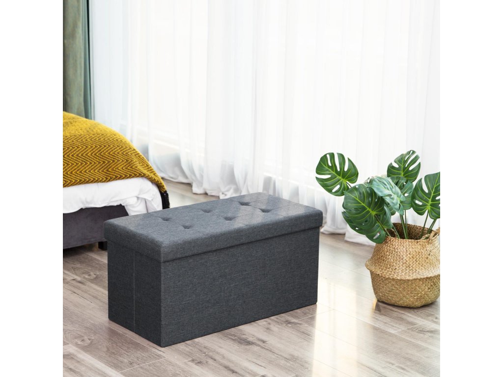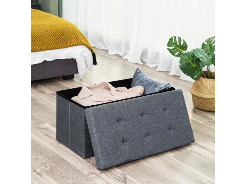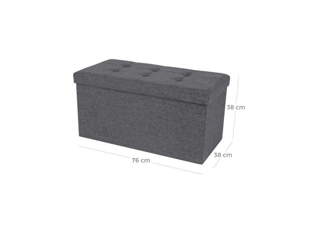 Lněná látková skládací úložná lavice, všestranná, prostorově úsporná, tmavě šedá, 76 x 38 x 38cm.