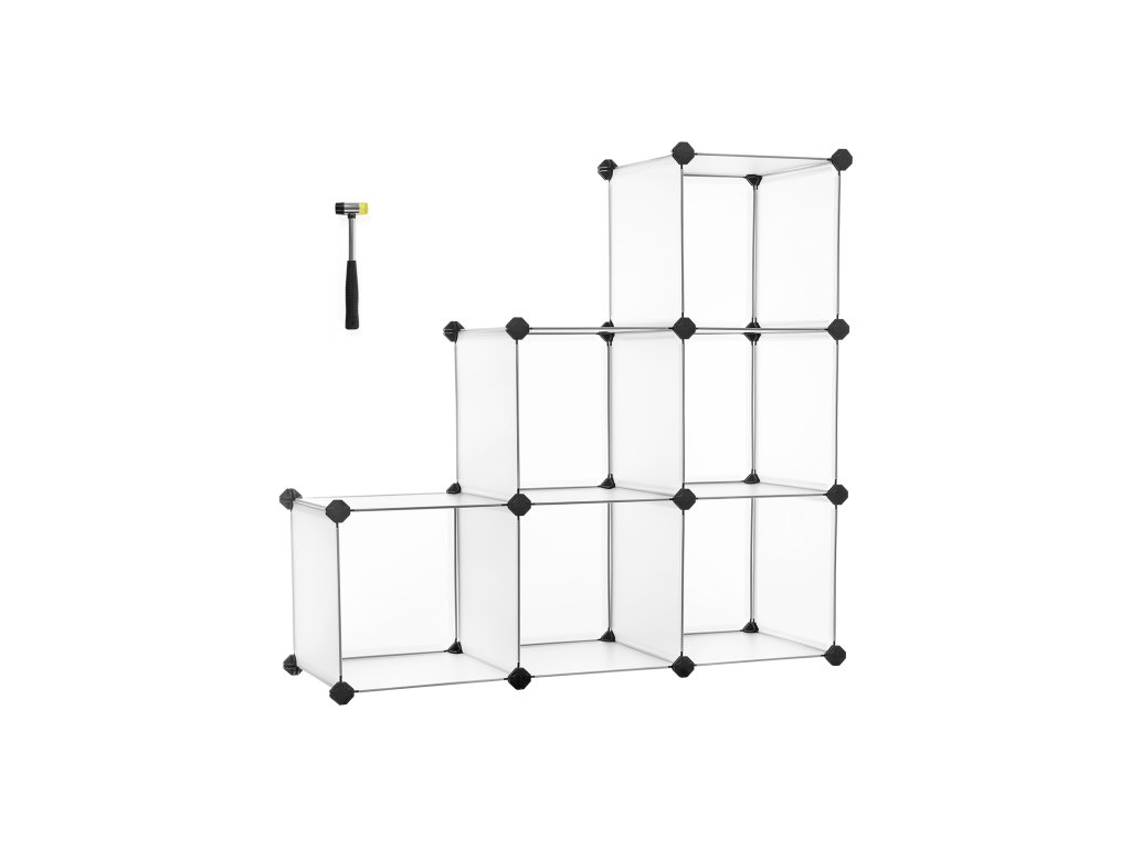 DIY design - Caddy v těžkém bezšroubovém regálovém systému zobrazuje různé designy. Můžete mít vlastní nápad a tento DIY. Představivosti se meze nekladou. Každou přihrádku lze zatížit rovnoměrným rozložením hmotnosti až do 10 kg. Rozměry výrobku: Rozměry: 96 x 96 x 31,5 cm (š x v x h).Vysoká stabilita - rám je vyroben z kovového rámu a připevněných plastových desek. Ty jsou odolné, snadno se čistí a jsou robustní. Dobře vyrobený, lehký, ale přesto robustní