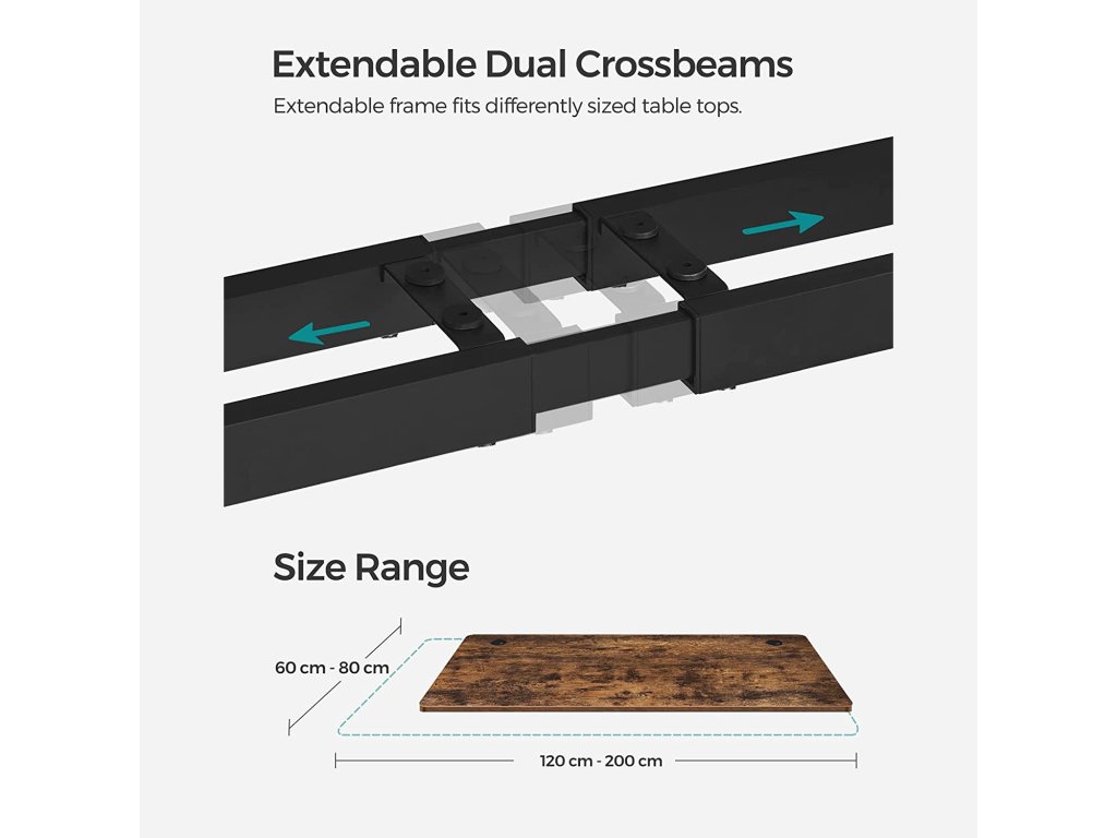 Nastavitelný rám stolu: tento robustní ocelový rám stolu je nastavitelný na délku v rozmezí 107,5 až 175 cm, a proto se hodí na různé povrchy stolů (délka 120-200 cm, šířka 60-80 cm).| Kategorie: | Psací a pracovní stoly |