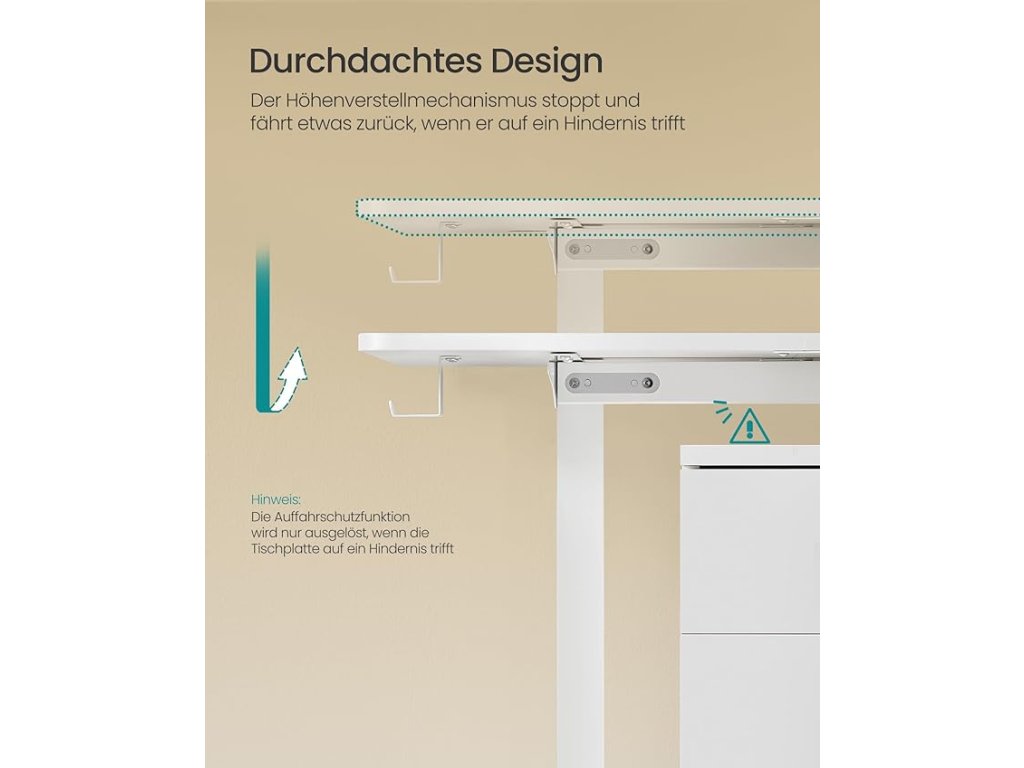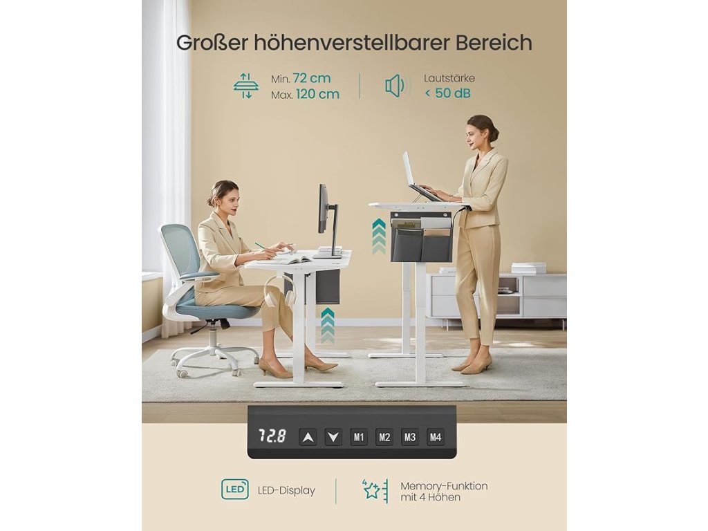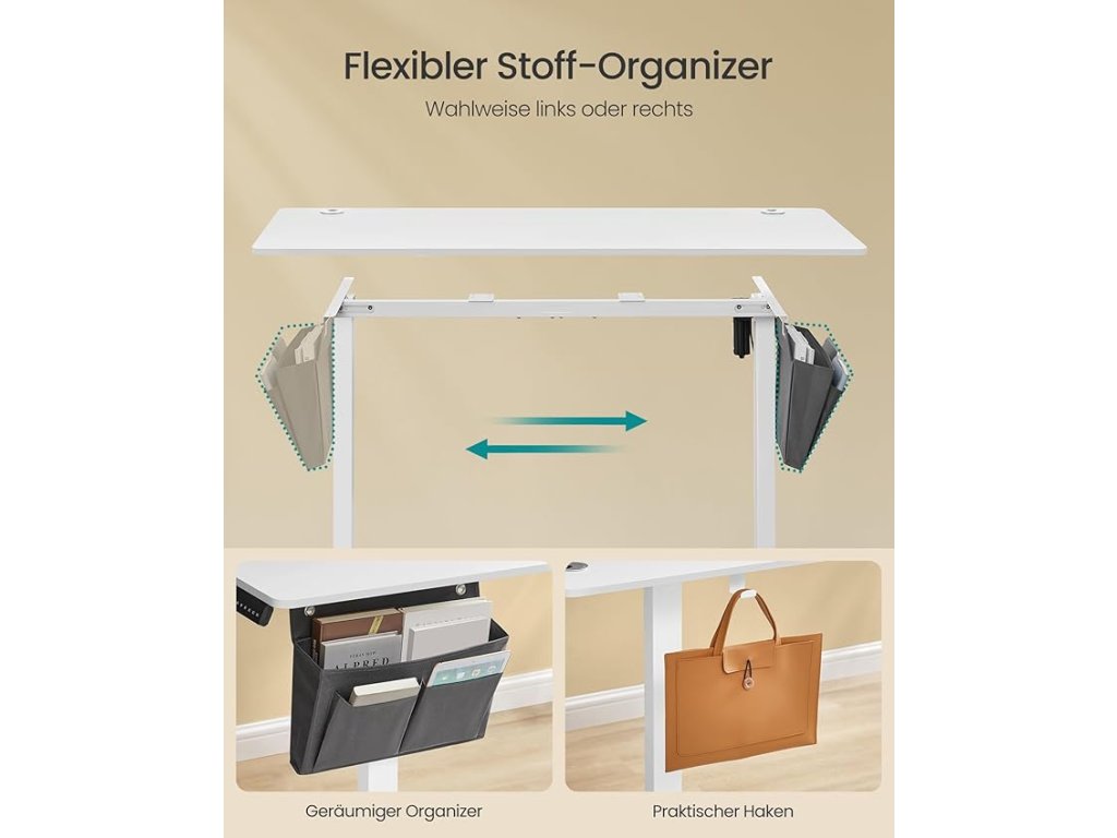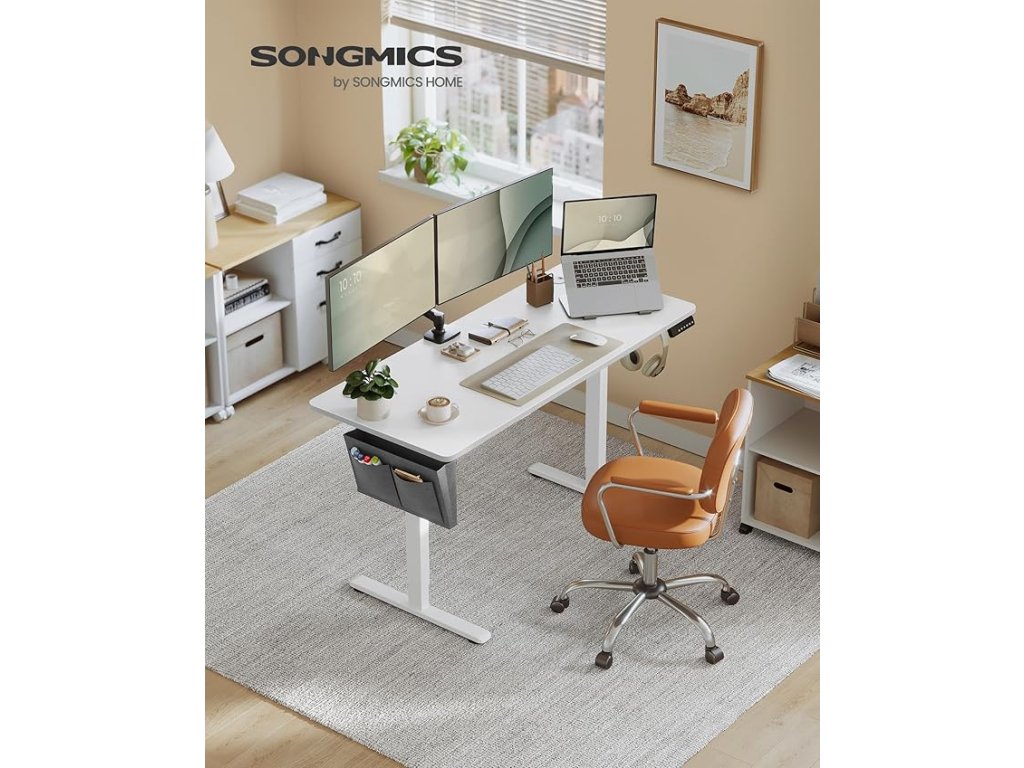 Robustní a stabilní: stůl je vyroben z robustního ocelového rámu a dřevotřískové desky, unese až 70 kg a nabízí stabilní a spolehlivé pracovní místo. i když je deska stolu zvednutá do maximální výšky.Vysoce kvalitní motor: vynikající motor tohoto stojícího stolu zajišťuje rovnoměrné nastavení výšky s hlučností nižší než 50 dB, což poskytuje tiché pracovní prostředí.Flexibilní a bezpečné nastavení výšky: stůl lze nastavit v rozmezí 72 až 120 cm a uložit 4 výšky jako rychle dostupné nastavení. Mechanismus výškového nastavení se při nárazu na překážku zastaví a mírně se vrátí zpět, což zajišťuje větší bezpečnost.Udržujte pořádek: organizér z oxfordské tkaniny pro ukládání knih a psacích potřeb, háček na zavěšení sluchátek nebo tašek a 2 otvory pro vedení kabelů - to vše zajišťuje uklizenou desku stolu.Snadná montáž: díky označeným dílům a jasnému návodu (čeština není zaručena) je sestavení tohoto nastavitelného stolu hračkou. Méně času na přípravu znamená více produktivního času na novém pracovišti.| Kategorie: | Psací a pracovní stoly |