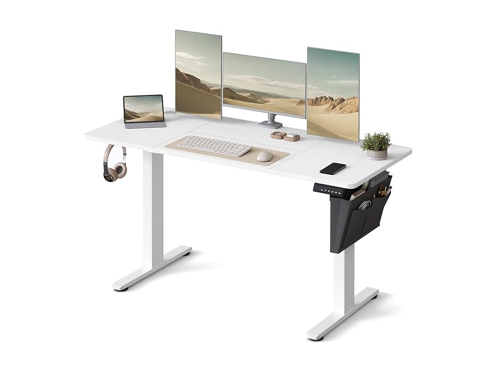 Výškově nastavitelný elektrický psací stůl, 60 x 140 x 72-120 cm, paměťová funkce se 4 výškami, pro domácí kancelář, pracovnu, bílý.