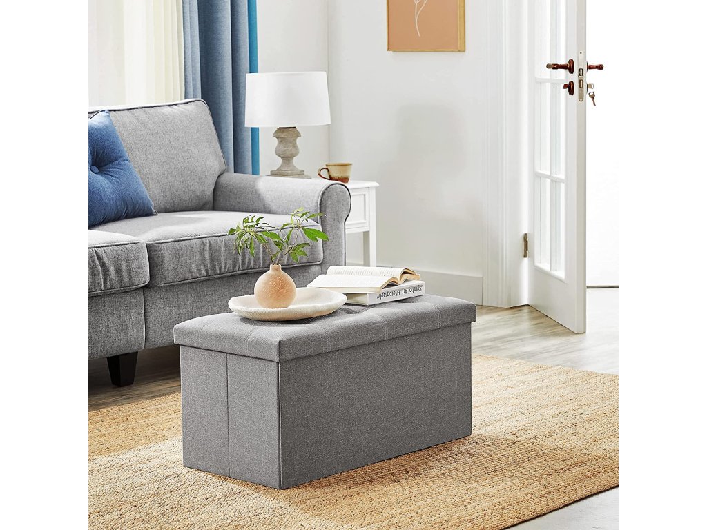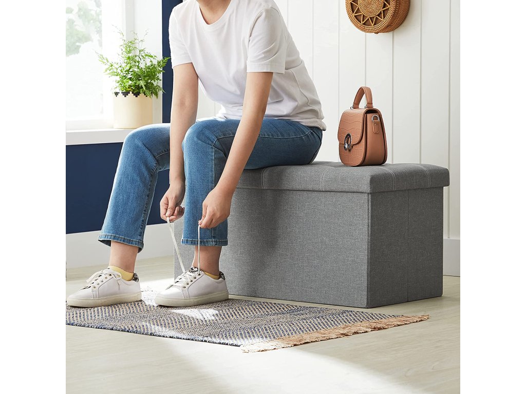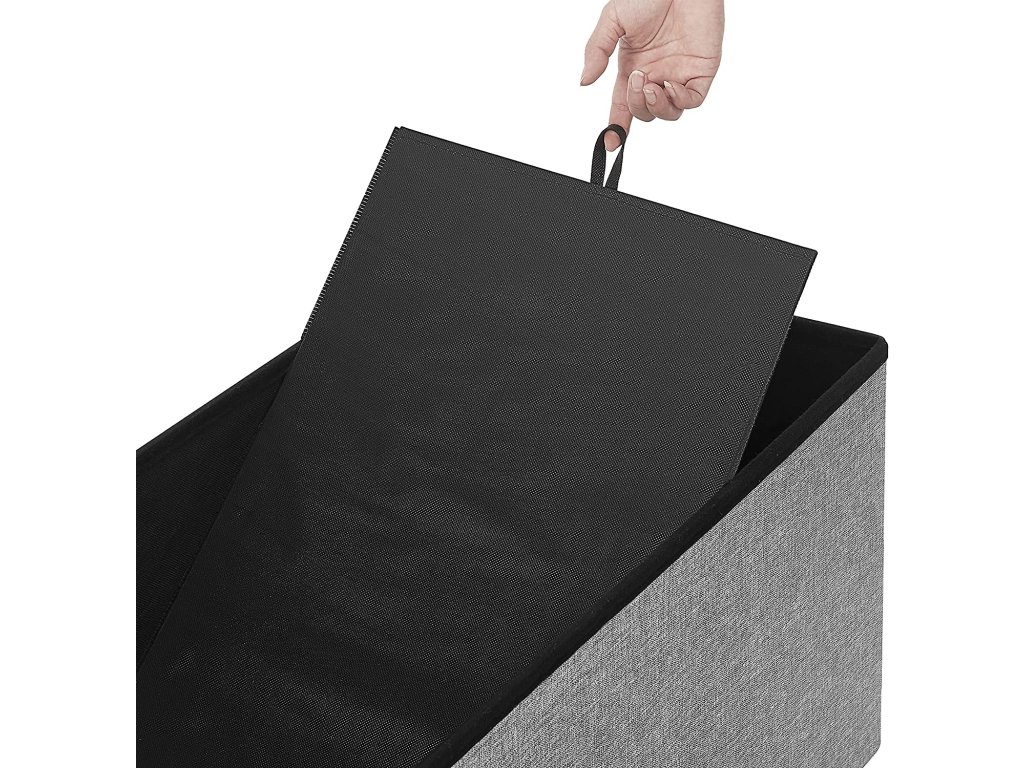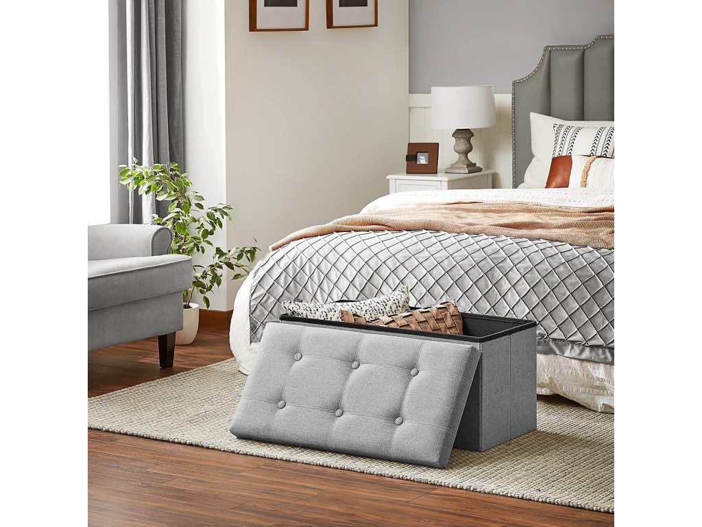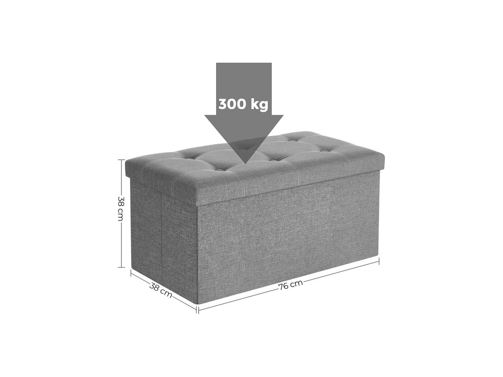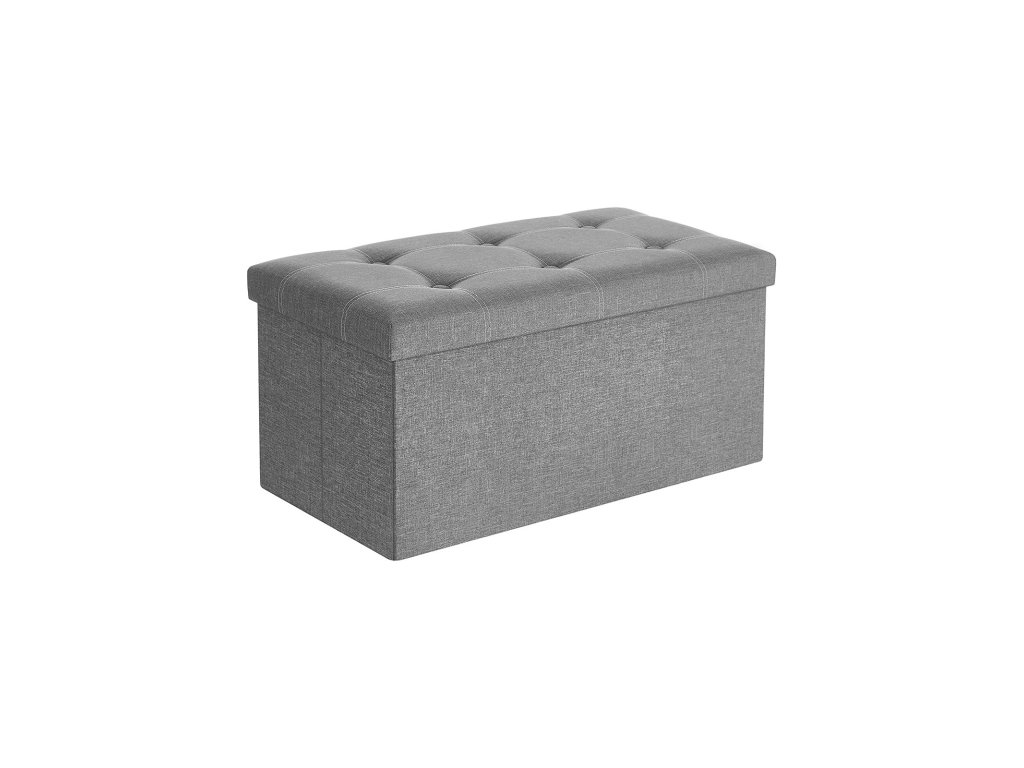 Lavice s úložným prostorem, truhla, skládací, 76 x 38 x 38 cm, potah z imitace lnu, do ložnice, předsíně, obývacího pokoje, světle šedá.
