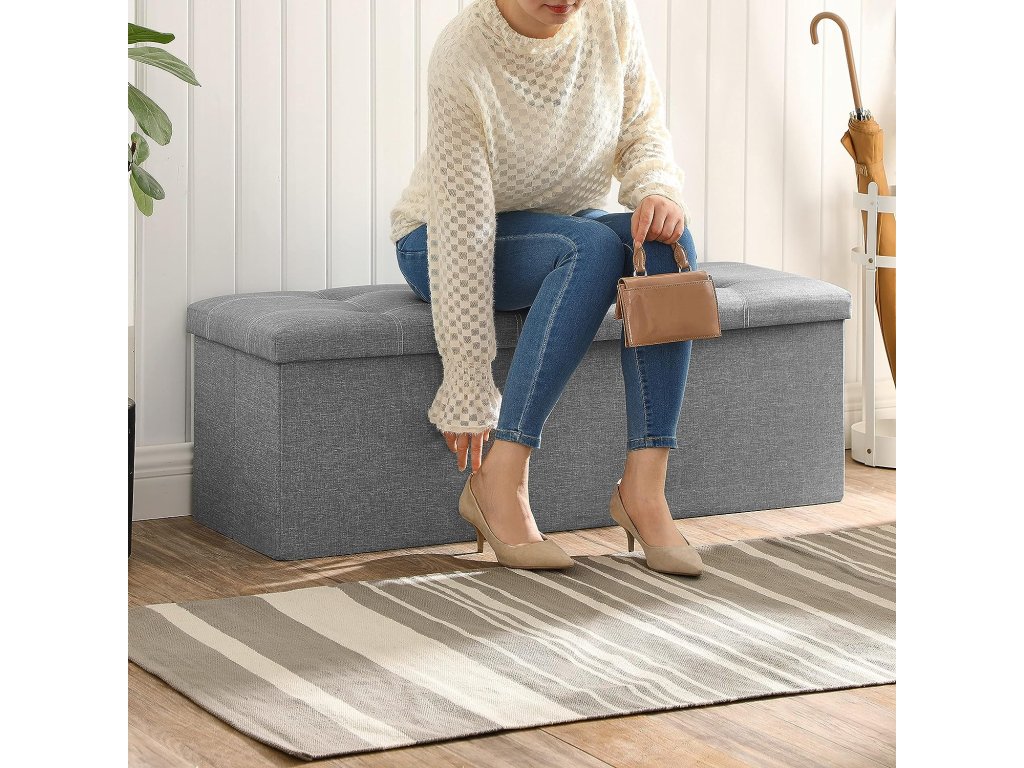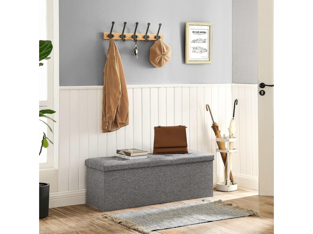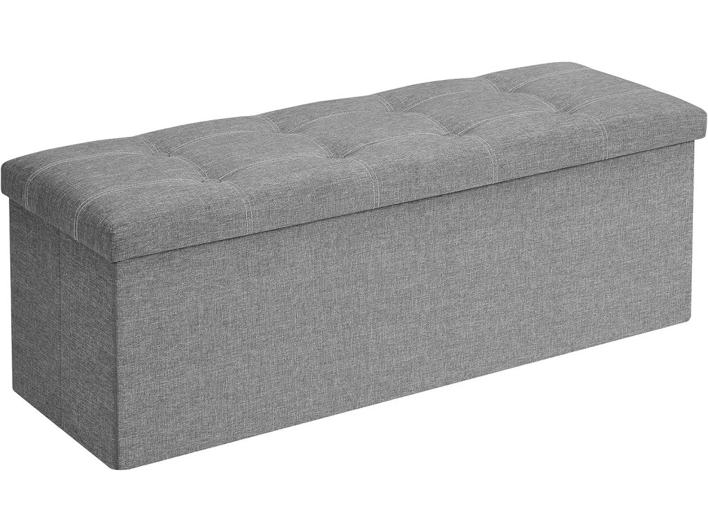 Lavice s úložným prostorem, truhla, skládací, 110 x 38 x 38 cm, potah z imitace lnu, do ložnice, předsíně, obývacího pokoje, světle šedá.