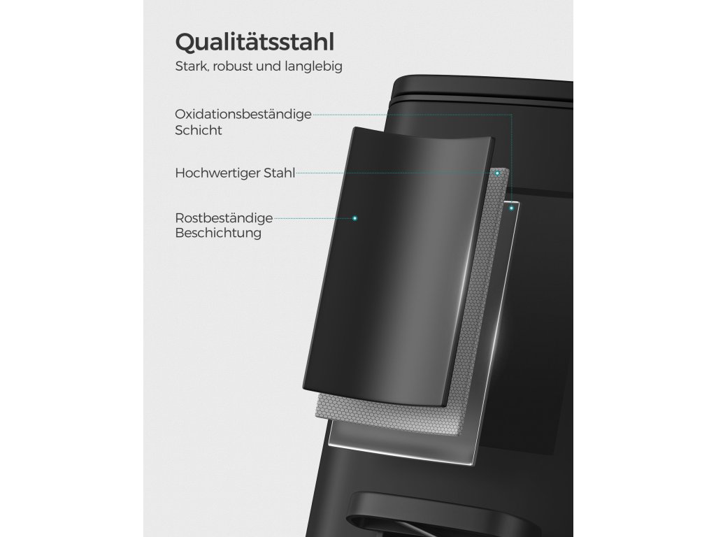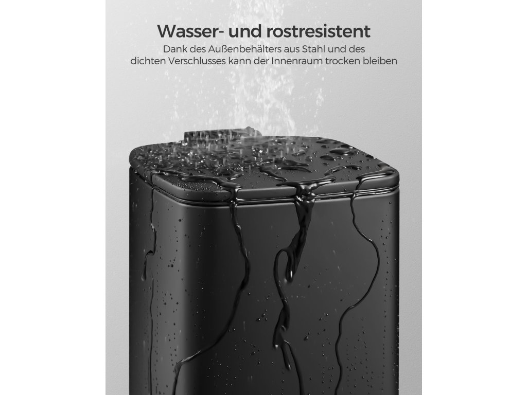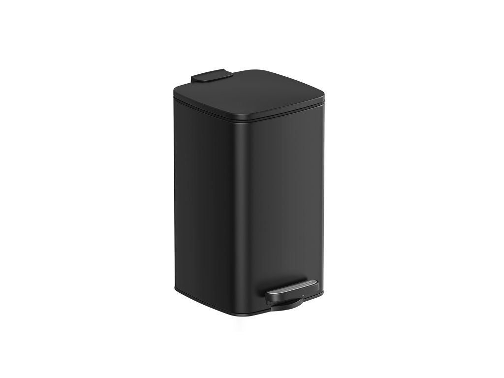 Koupelnový odpadkový koš s víkem, 8 l, pro malé prostory, Soft Close, ocel, černý.