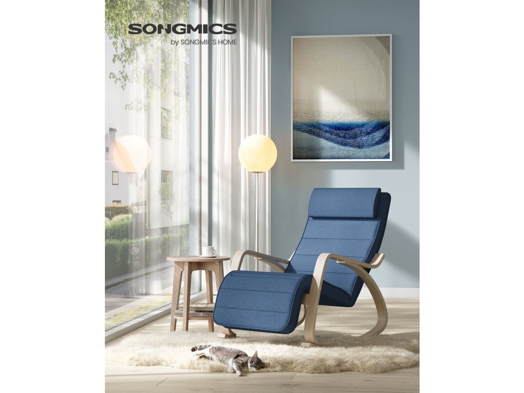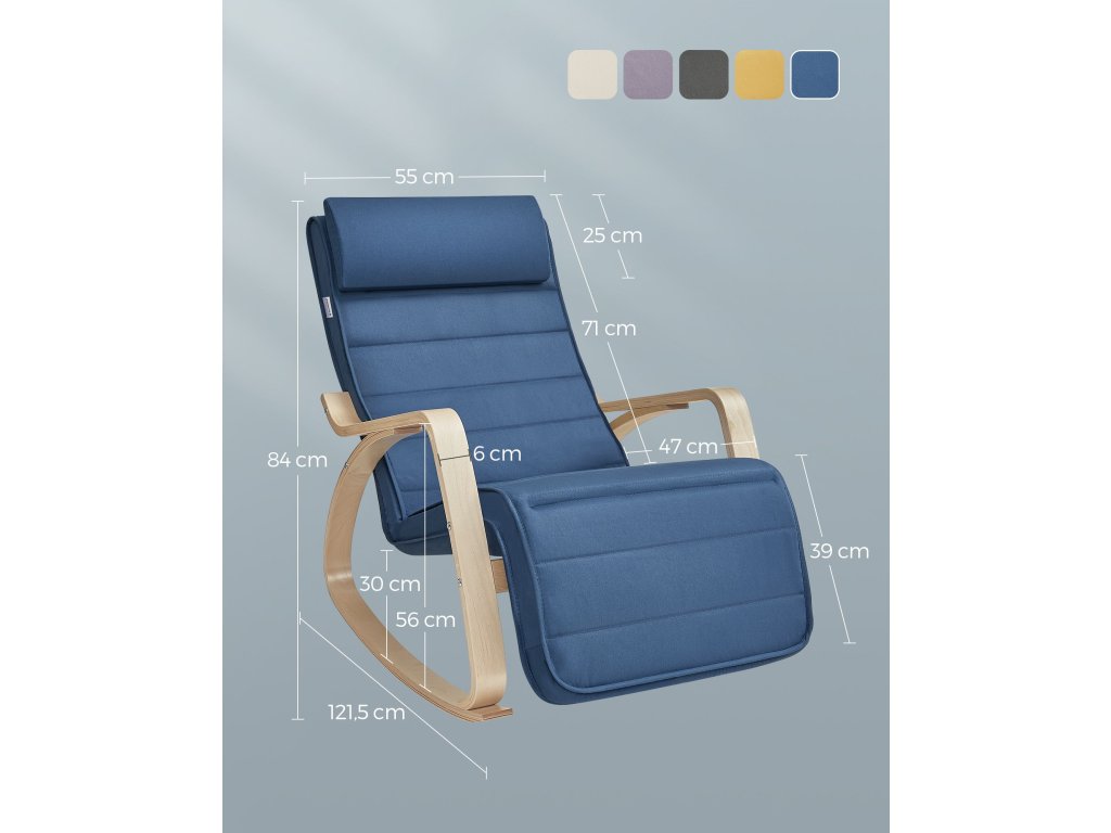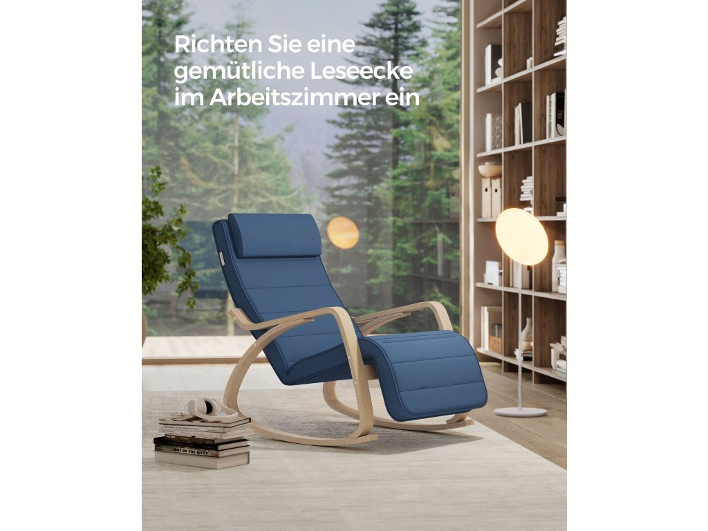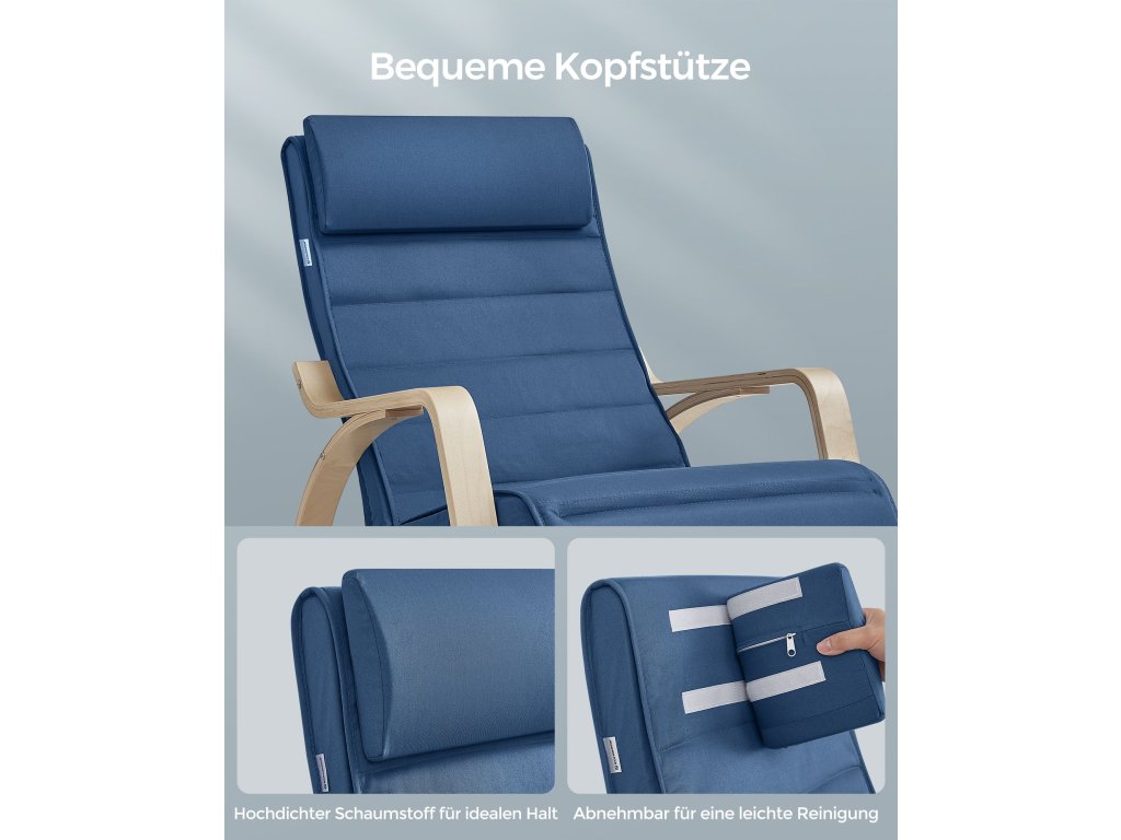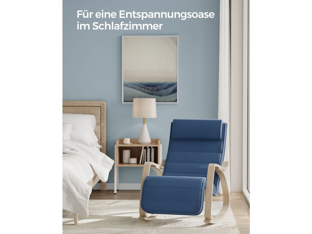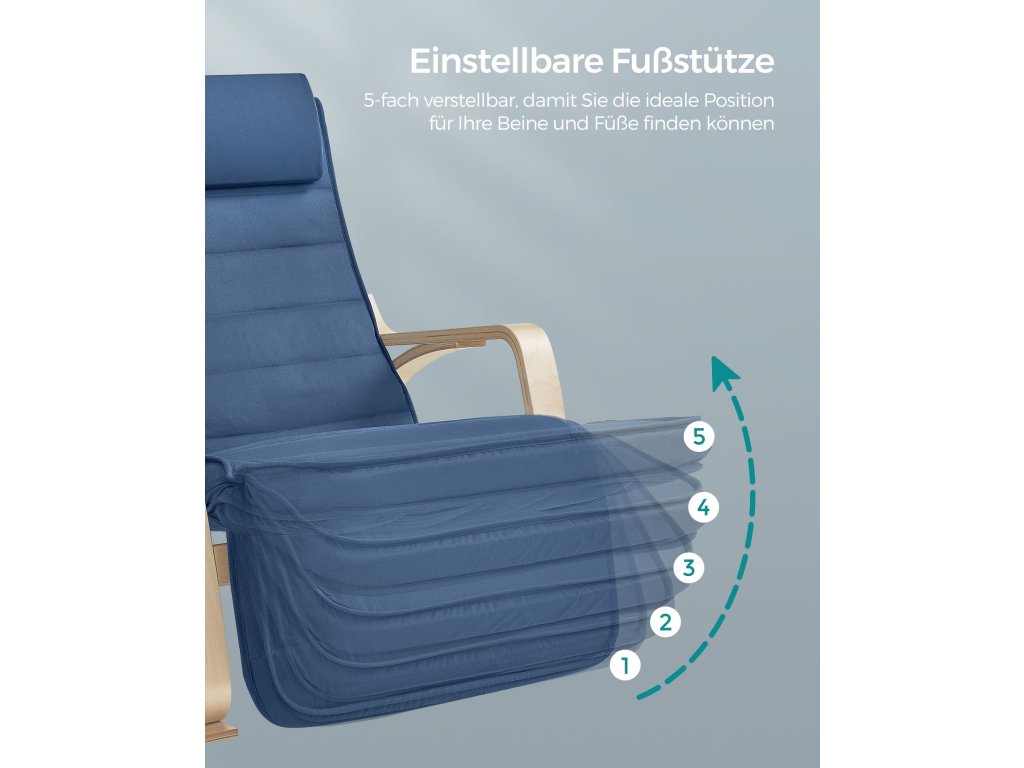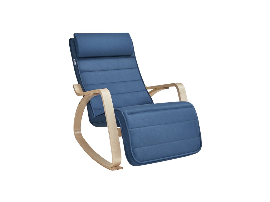 Houpací křeslo z březového dřeva s područkami 5 poloh, nastavitelná podnožka, maximální zatížení 150 kg pro ložnici, obývací pokoj, půlnoční modrá, přírodní.