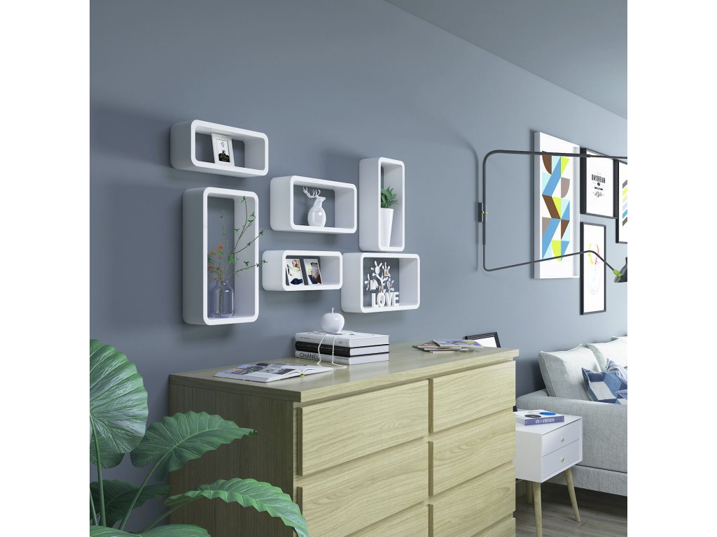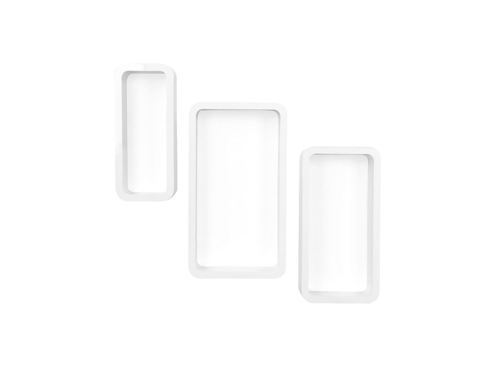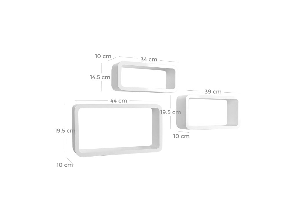 Nástěnná, sada 3 plovoucích polic, kostkové úložné organizéry, každá pojme až 15 kg, 44, 39, 34 cm, bílá, 34 x 10 x 14,5 cm.