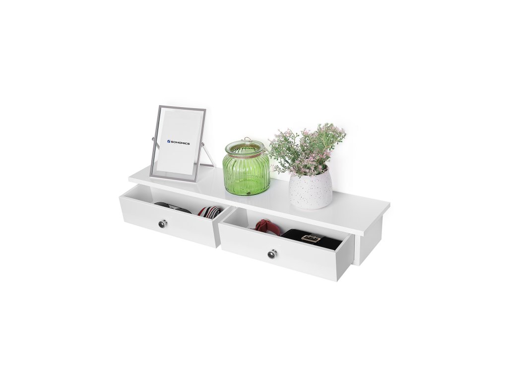 DOSÁHNOUT VÍCE S MENŠÍMI NÁKLADY: Chcete dodat prázdné stěně styl? Toužíte se pochlubit nějakým pěkným dekorem? Potřebujete schovat předměty, které nejsou na očích? To vše si můžete dopřát s touto nástěnnou policí se 2 zásuvkami.BEZPEČNÁ A SPOLEHLIVÁ PODPORA: Zásuvky jsou vybaveny zarážkami, které je nelze zcela vytáhnout, takže jsou v bezpečí; tato nástěnná police je vyrobena z kvalitního umělého dřeva a vydrží dlouhá léta.POUŽÍVAT VŠUDE: Záleží jen na vás, kam ho umístíte: do vstupní haly na klíče, do obývacího pokoje na zarámované obrázky nebo pod zrcadlo toaletního stolku, kde si vytvoříte svůj stylingový koutek!SNADNÁ INSTALACE: Není nutná žádná montáž; tato plovoucí police je připravena k použití, stačí ji pouze připevnit ke stěně pomocí šroubů a závěsného kování a poté na ni můžete položit předměty;CO ZÍSKÁTE: Nástěnná police se 2 zásuvkami a lesklým povrchem, která ozvláštní váš domov.| Kategorie: | Regály a poličky |