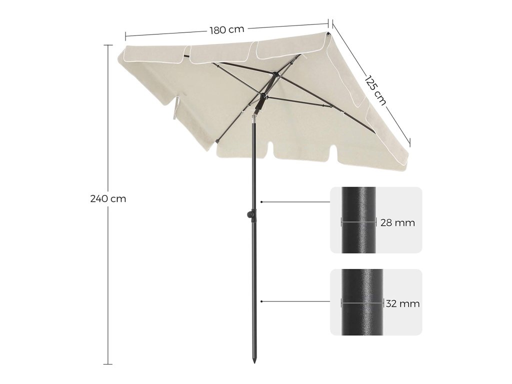 Obdélníkový balkonový slunečník 1,8 x 1,25 m, ochrana UPF 50+, sklápěcí slunečník, stříška s PA potahem, taška na přenášení, zahradní terasa, podstavec není součástí dodávky, béžová.