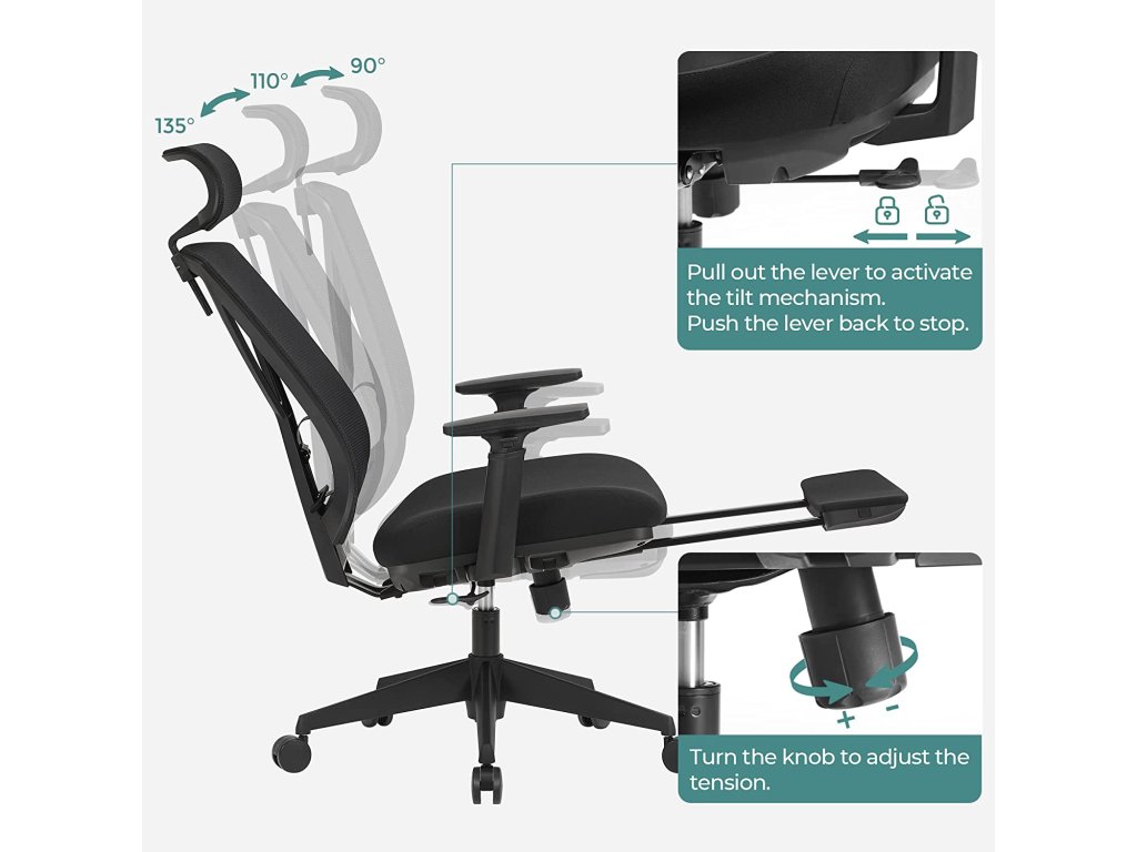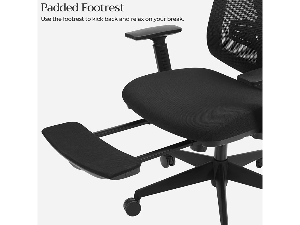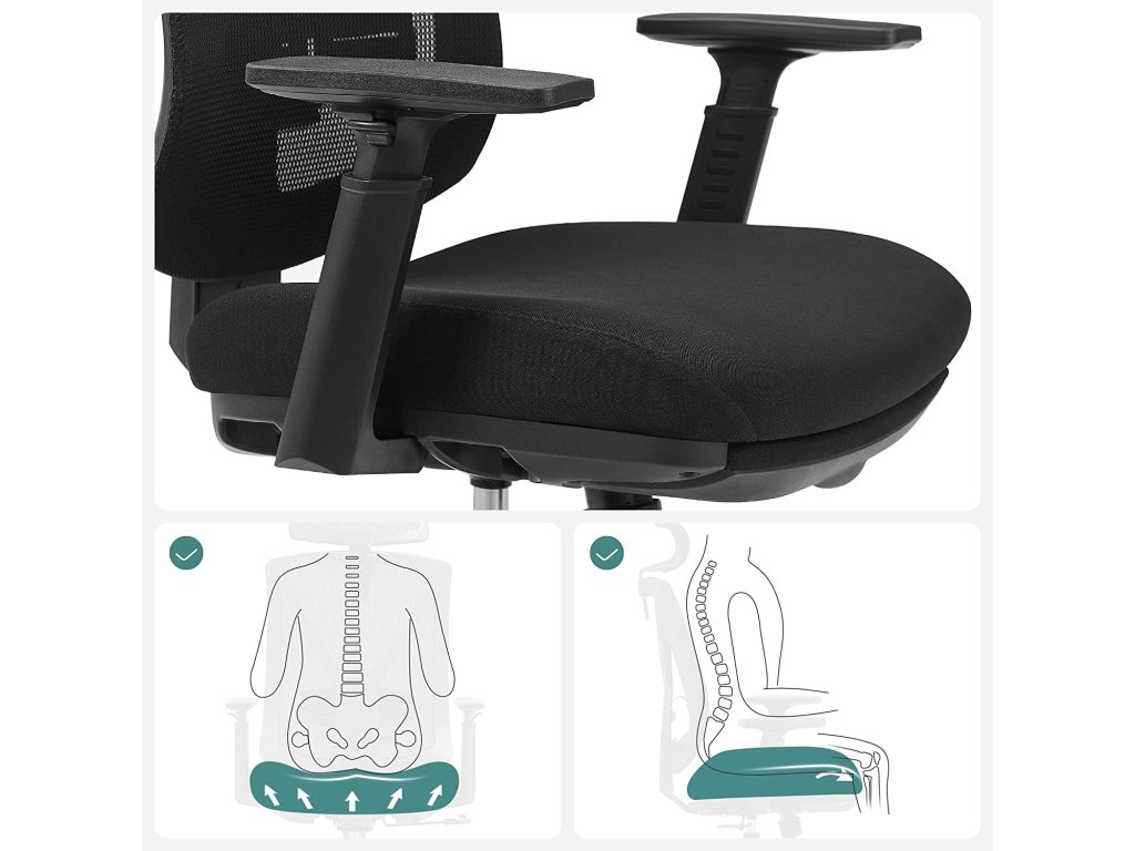 Doplňte energii: kancelářská práce vás může nekonečně táhnout, když sedíte na nepohodlné židli. Tato kancelářská židle od společnosti Songmics je polstrovaná pěnou s vysokou hustotou a prodyšným opěradlem a poskytuje tu správnou motivaci pro kancelářské hrdiny.Potřebujete si odpočinout? Použijte 42cm výsuvnou polstrovanou opěrku nohou a na pár minut si odpočiňte, abyste se do továrny vrátili svěží.