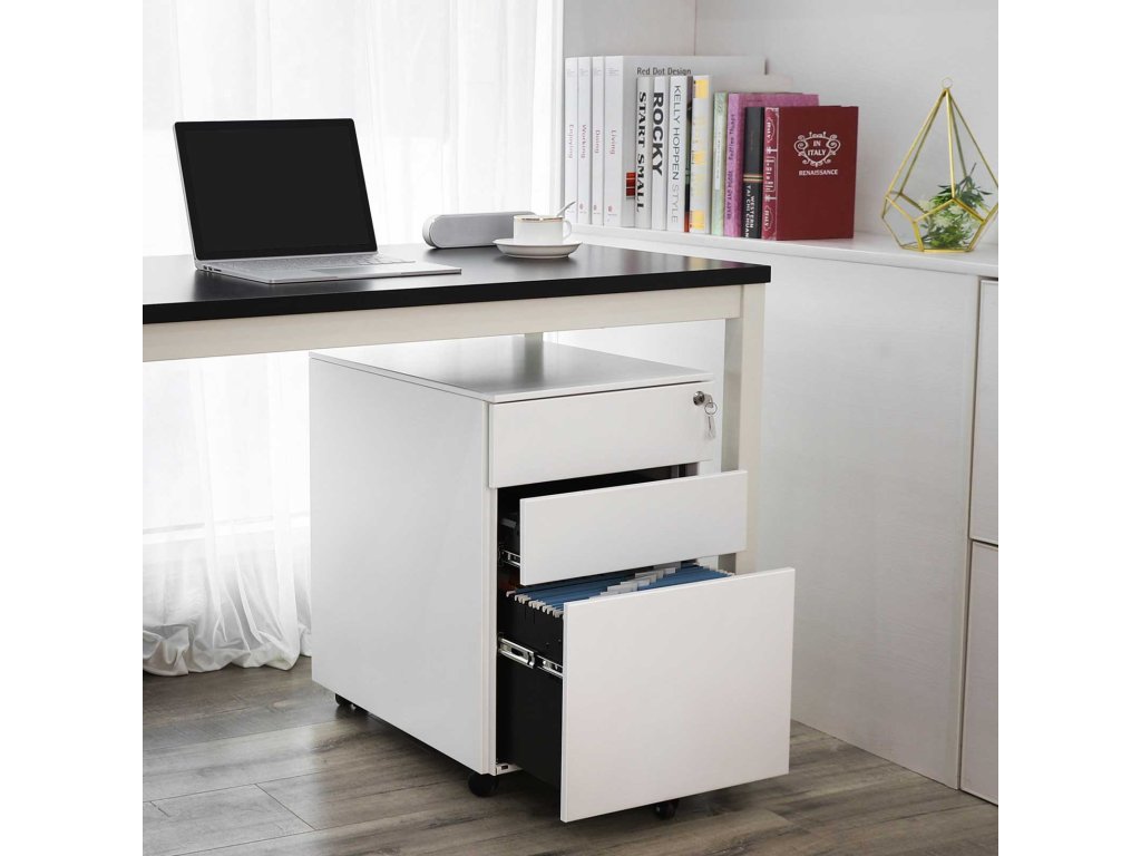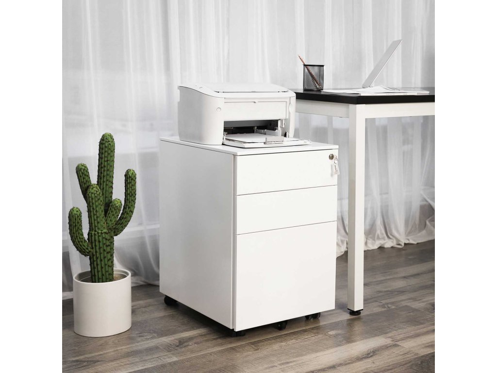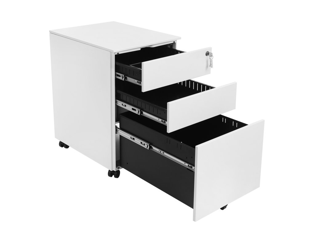 Vše na jednom místě: Upadá vaše kancelář do chaosu? Tato skříňka (39 x 52 x 60 cm) nabízí spoustu úložného prostoru, ale zabírá málo místa. Do 3 zásuvek můžete ukládat soubory různých formátů (A4, letter nebo legal).Robustní? Tato kartotéka je bezpochyby vyrobena z odolné oceli, která zajišťuje vysokou stabilitu - každá ze dvou horních zásuvek unese až 15 kg, velká spodní zásuvka až 20 kg.