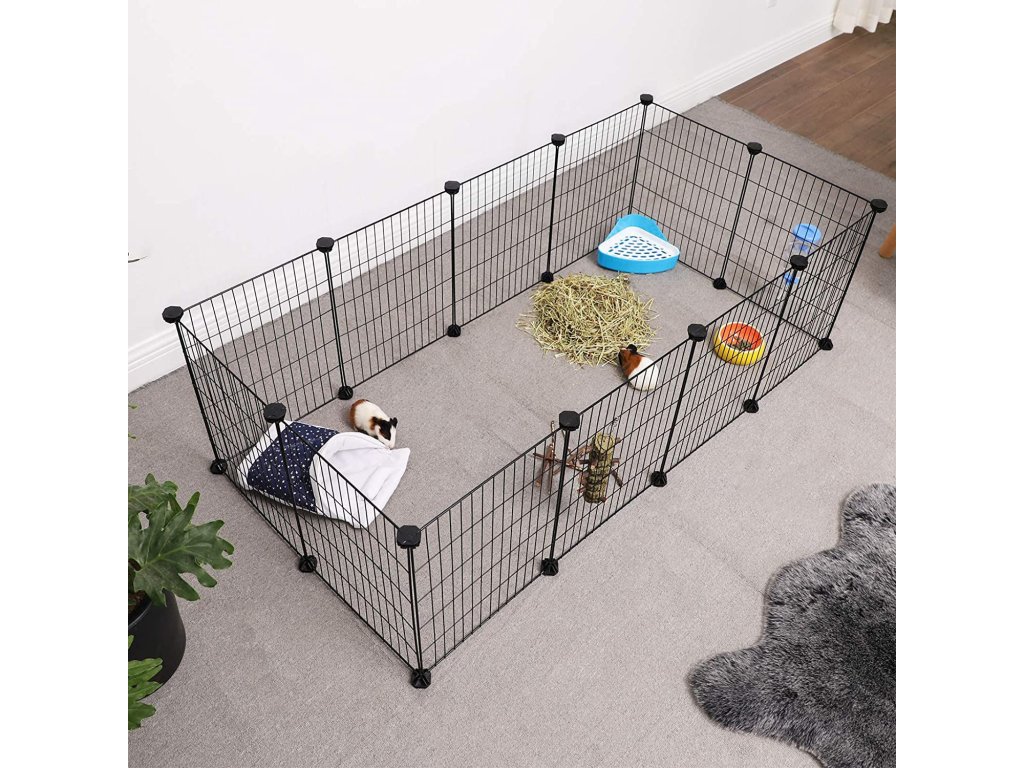 Ohrádka pro morčata, krytá klec pro králíky, velký výběh, DIY kovový modulární plot pro křečky, domácí zvířata, malá zvířata, černá.