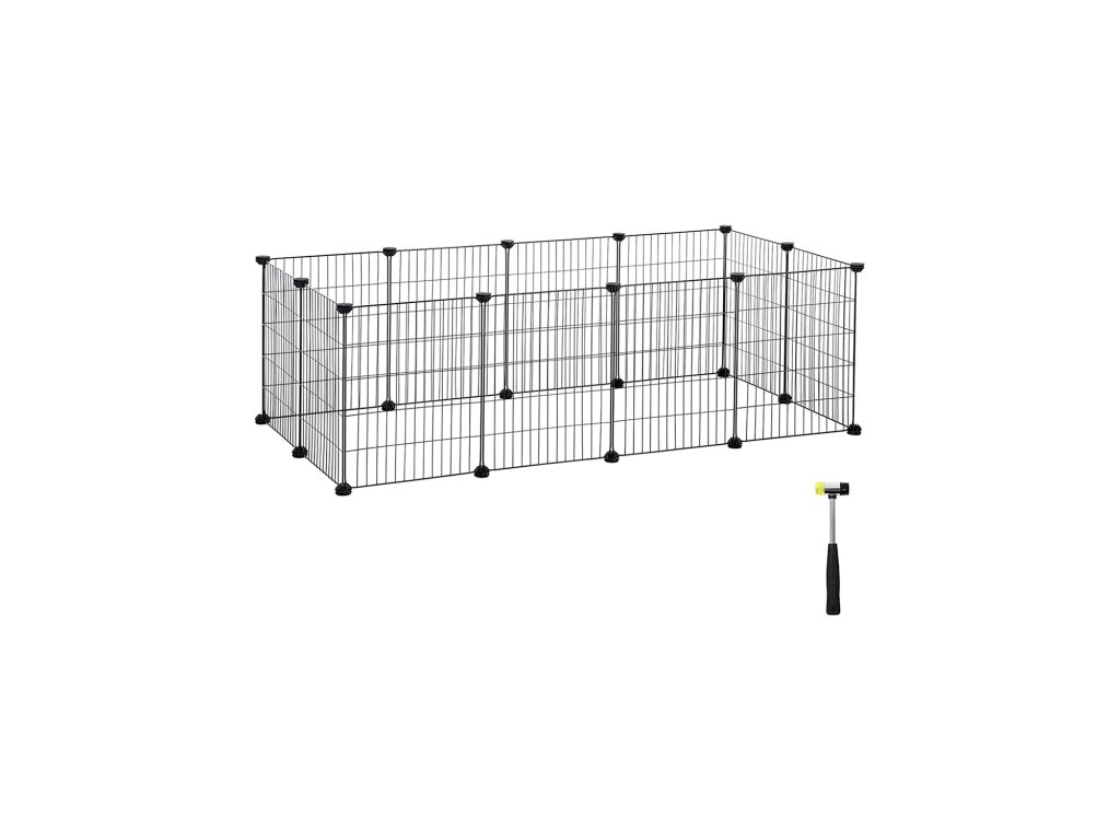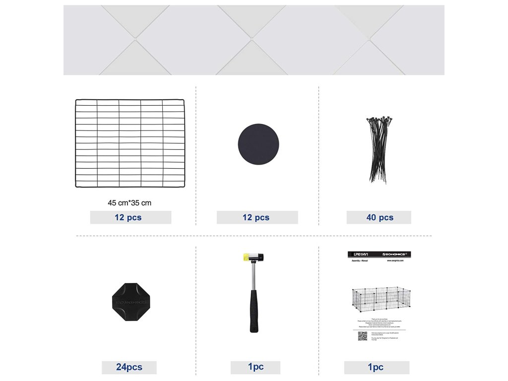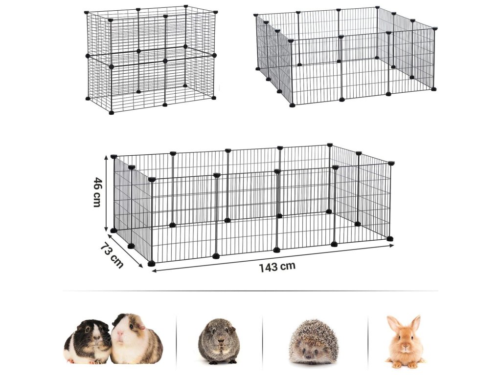 ZVÍŘECÍ RADOST: Máte doma králíky, křečky nebo jiné malé členy rodiny? Tato klec pro domácí mazlíčky jim dodá pocit svobody a dá vašim chlupatým mazlíčkům pocítit, jak moc je máte rádi.BEZPEČNÁ VOLBA: Tento výběh pro domácí mazlíčky poskytuje vašim přátelským hlodavcům chráněné prostředí. Velikost ok byla zmenšena na 2,5 cm, aby se do nich zvířata nezachytila - můžete své chlupaté kamarády vždy bez problémů hlídat.DOBŘE CHRÁNĚNÉ: Plotové mříže jsou spojeny robustními spojkami z plastu ABS. Díky tomu se klec nebude kývat, ani když si v ní bude vaše chlupatá koule divoce hrát. Protiskluzové podložky na spodních konektorech zabraňují poškrábání podlahy klecí.Udělej si sám podle svých představ: Sestavte si panely a konektory podle svých představ a vytvořte si klec pro domácí mazlíčky, která bude optimálně přizpůsobena vašim prostorám.CO ZÍSKÁTE: 12 mřížkových desek, 24 plastových spojů, 12 protiskluzových podložek, 1 gumová palička, 40 stahovacích pásků - vše, co potřebujete k vybudování ráje pro malá zvířata!| Kategorie: | Klece pro hlodavce |