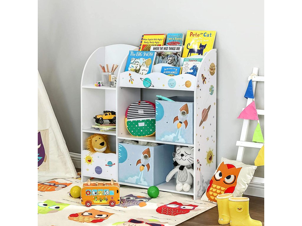 Organizační záležitosti: Pokud svým dětem říkáte, že si jejich hračky zaslouží uklizený domov, tento organizér na hračky je konečně přiměje naučit se vše uspořádat. Časem jim může pomoci i při přípravě na školu.Knihy, hračky, drobnosti: Co dalšího má vaše dítě? Pusťte je sem všechny - 3 prostorné přihrádky na knihy, 3 kostky a velká přihrádka na plyšové hračky. 2 látkové zásuvky na stavebnice a další drobnostiStabilita na prvním místě: Cokoli pro vaše nejmenší by mělo být co nejlepší, a proto má tato dětská úložná jednotka zaoblené rohy, které chrání vaše dítě před nárazy a odřeninami; doporučujeme použít sadu proti převrácení pro větší stabilitu;Dekorativní dotek: Krásný organizér na hračky a knihy se samolepkami rozzáří dětský prostor; rakety, asteroidy a hvězdy vnesou do jejich života a představivosti nadšení pro objevování.| Kategorie: | Regály a poličky |