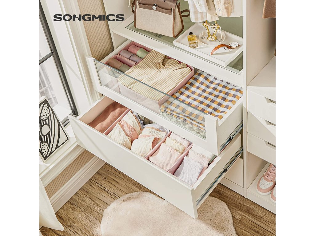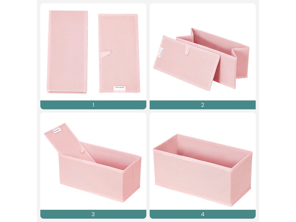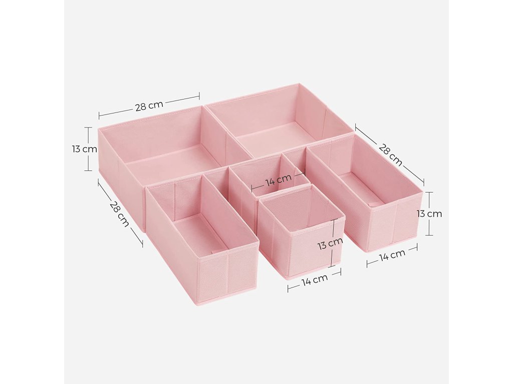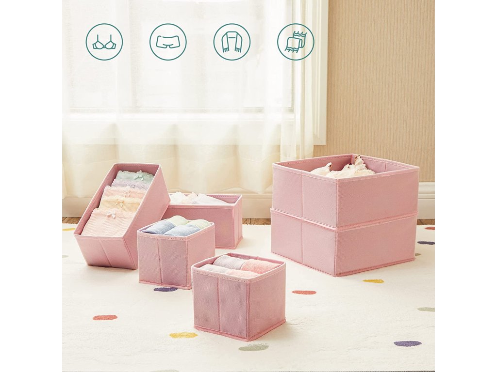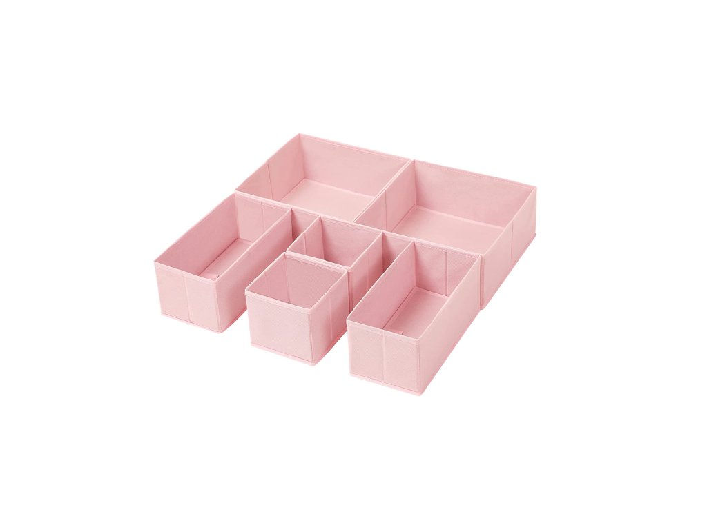 Organizéry do zásuvek, rozdělovače do šatníku, sada 6 skládacích látkových boxů na ponožky, spodní prádlo, podprsenky, kravaty, šály, růžová.