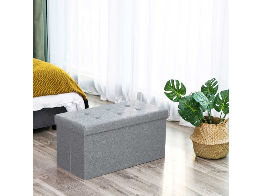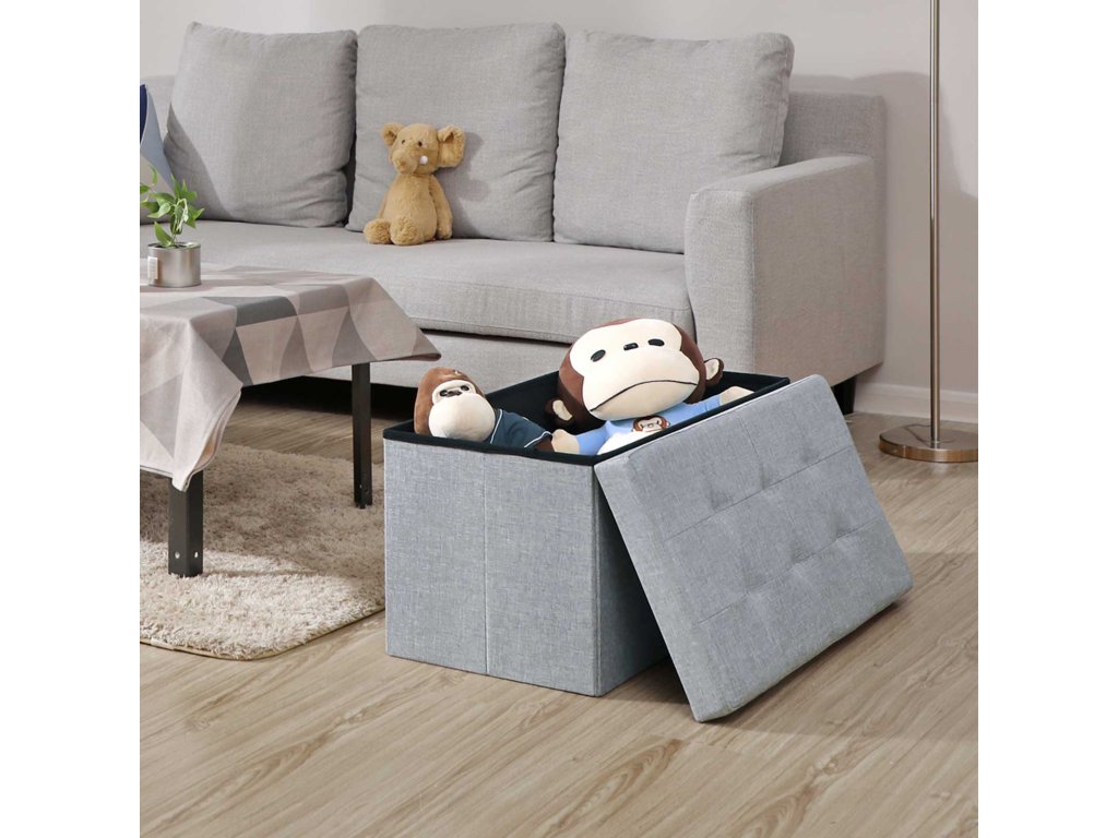 Osmanská úložná truhla, skládací box na hračky, všestranná úspora místa, světle šedá 76 x 38 x 38 cm, lněná tkanina.