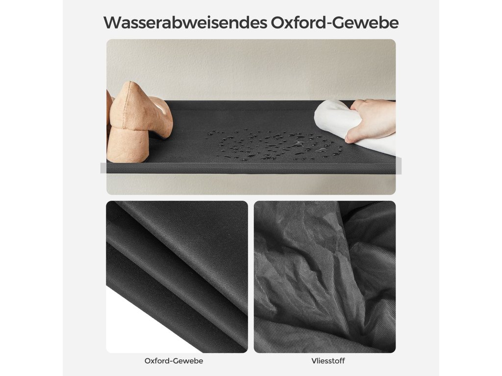 Robustní a odolný Kovový rám tohoto organizéru na boty je robustní. Police s nosností 10 kg každá jsou vyrobeny z kvalitní, vodu odpuzující tkaniny Oxford, jsou odolné a snadno se čistí.Velká kapacita Každá police tohoto botníku o rozměrech 29 x 89 x 92,5 cm pojme až 4 páry pánských bot nebo 5 párů dámských bot, celkem 20-25 párů bot. Své místo tu najdou tenisky, pantofle i tašky.Snadná montáž a vysoká stabilita Díky zasouvací konstrukci polic, jasným pokynům a označeným dílům je montáž tohoto stojanu na boty snadná. Díky 4 nastavitelným nožičkám a sadám proti překlopení bude tento organizér na boty stabilní i na mírně nerovných podlahách.4 háčky a odnímatelné látkové police Víceúčelový otevřený botník je vybaven 4 háčky na zavěšení klíčů a skládacích deštníků. Jednu polici můžete odstranit, abyste získali dostatek místa pro vysoké boty nebo úložné boxy.Co dostanete Úzký stojan na boty s kovovým rámem, 5 policemi a 4 háčky. Díky rustikální hnědé horní látkové polici dodá vaší předsíni nebo ložnici dekorativní nádech a zároveň nabízí dostatek prostoru pro boty, tašky a krabice.Buďte první, kdo napíše příspěvek k této položce.
