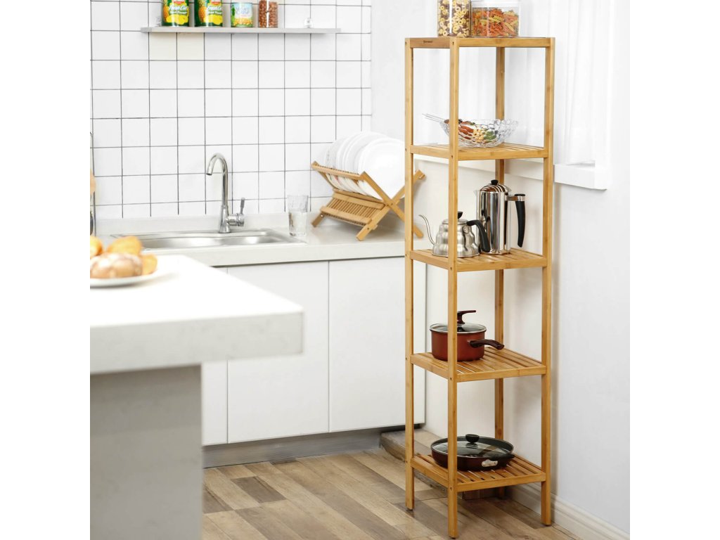 Pozdravte bambus: Rozlučte se se studeným, tuhým kovem a chatrnými dřevěnými policemi! Zateplete svůj pokoj tímto oku lahodícím regálem z přírodního bambusu. Překvapí vás svou stabilitou a odolností.DOBRÉ ZPRÁVY PRO MALÉ OBLASTI: Chcete prostorný stojan, který zabere málo místa? Právě jste ho našli! Tento pětipatrový regál o rozměrech 33 x 33 x 146 cm vám pomůže maximalizovat vertikální prostor a ušetří více místa na podlaze pro ostatní položkyV KAŽDÉM pokoji se po něm shání: v koupelně ho potřebujete na ručníky a lahvičky se šamponem, v kuchyni na koření a nádobí; obývací pokoj chce, aby v něm byly vystaveny rostliny v květináčích a drobné předměty. Jaký je váš plán?MONTÁŽ JE BEZPROSTŘEDNÍ: Dřevěné a kovové regály obvykle potřebují 2 nebo více typů šroubů a odpovídající šrouby, ale tento bambusový regál potřebuje pouze 1 typ šroubu a žádné šrouby, což značně usnadňuje montáž.100% ZÁRUKA SPOKOJENOSTI: Společnost SONGMICS vám poskytuje profesionální zákaznický servis před nákupem i po něm; nečekejte déle a pořiďte si toto zařízení do své domácnosti ještě dnes.| Kategorie: | Koupelnové regály |