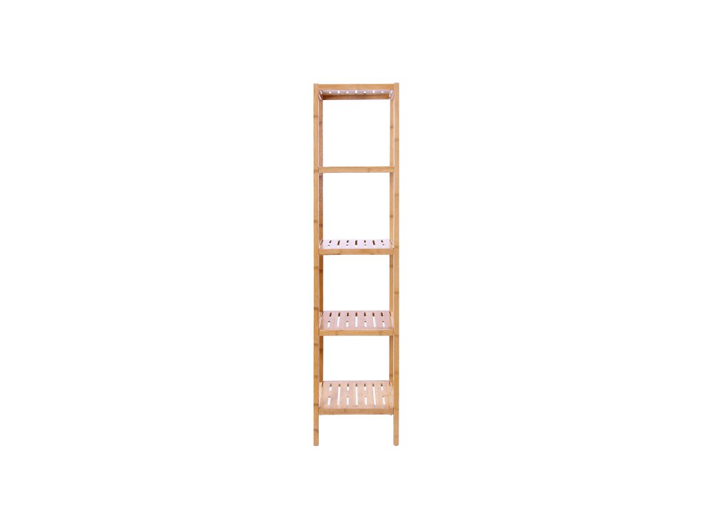 Pětiúrovňová bambusová polička do koupelny, stojící kuchyňský regál, 33 x 33 x 146 cm (d x š x v), pro úzké prostory, obývací pokoj, ložnice, předsíň.