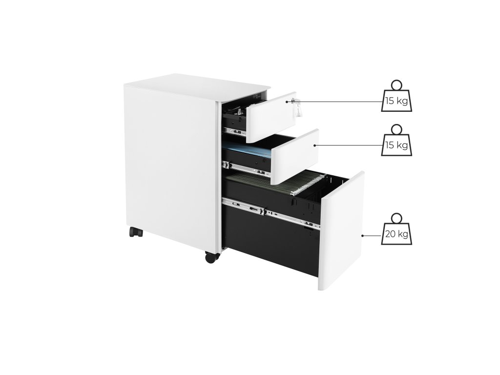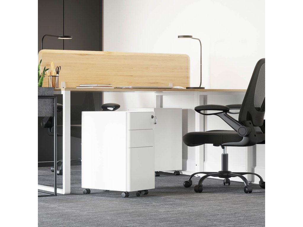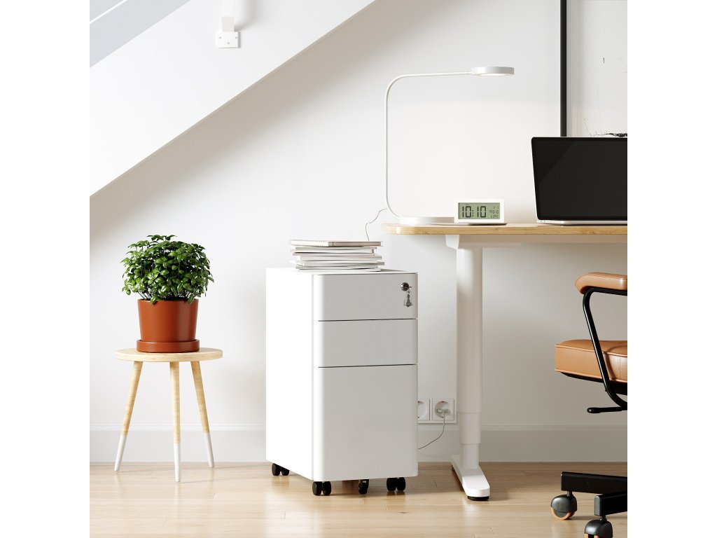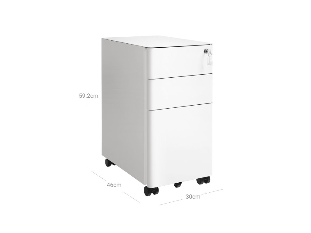 Vše na jednom místě: Chcete uklidit hromady papírů ze stolu? Tato skříňka na dokumenty o rozměrech 30 x 46 x 59,2 cm se vám bude hodit a přitom nezabere mnoho místa. Do 3 prostorných zásuvek se vejdou všechny papíry, ať už jde o formát A4, dopisní papír, nebo kancelářský papír.Mobilní telefon? Fantastické! Pojďte si usnadnit život s papírováním s touto pojízdnou kartotékou. Je vybavena 5 pojízdnými kolečky, takže ji nyní můžete snadno zasunout pod desku stolu nebo do blízkosti tiskárny.