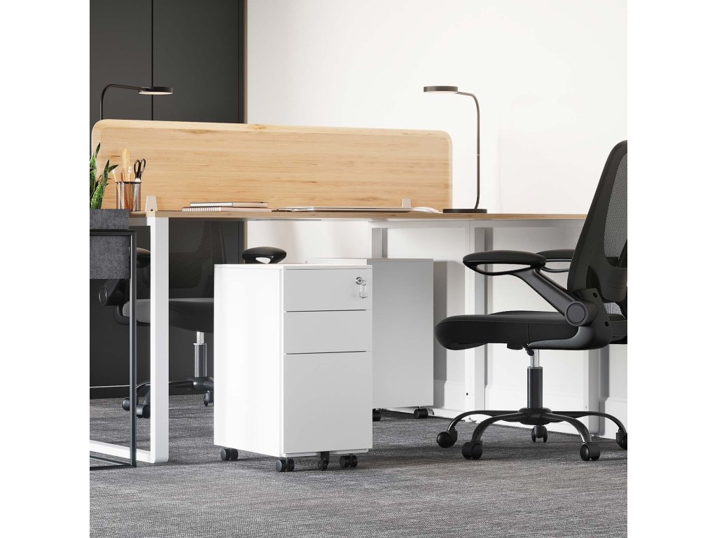 Vše na jednom místě: Chcete uklidit hromady papírů ze stolu? Tato kartotéka o rozměrech 30 x 45 x 60 cm se vám bude hodit a přitom nezabere mnoho místa. Do 3 prostorných zásuvek se vejdou všechny papíry, ať už jde o formát A4, dopisní papír, nebo kancelářský papír.O trvanlivosti není pochyb: Tato kartotéka je vyrobena z robustní ocelové konstrukce. která se může pochlubit velkou odolností - dvě horní zásuvky unesou až 15 kg a velká spodní zásuvka má maximální nosnost 20 kg.Minimalistický design: Na rozdíl od starých skříní je tato uzamykatelná boční skříňka navržena bez výsuvů zásuvek, což jí dodává minimalistický moderní vzhled. Díky kvalitním výsuvným kolejnicím můžete zásuvky plynule vytahovat po stranách.Přidejte led na dort: Vaše kartotéka může být mobilní - nebylo by to úžasné? Jakmile skříň dorazí, jednoduše přišroubujte 5 přiložených koleček. a pak můžete skříňku přemístit, kam potřebujete, a začít organizovat.Co získáte: SONGMICS kartotéka s bílou siluetou, 3 zásuvky, 1 přihrádka na psací potřeby, 1 závěsná lišta. a 5 robustních kol - 2 s brzdami pro zajištění na místě a 1 uprostřed předních kol, aby se zabránilo převrácení.| Kategorie: | Kancelářské skříně |