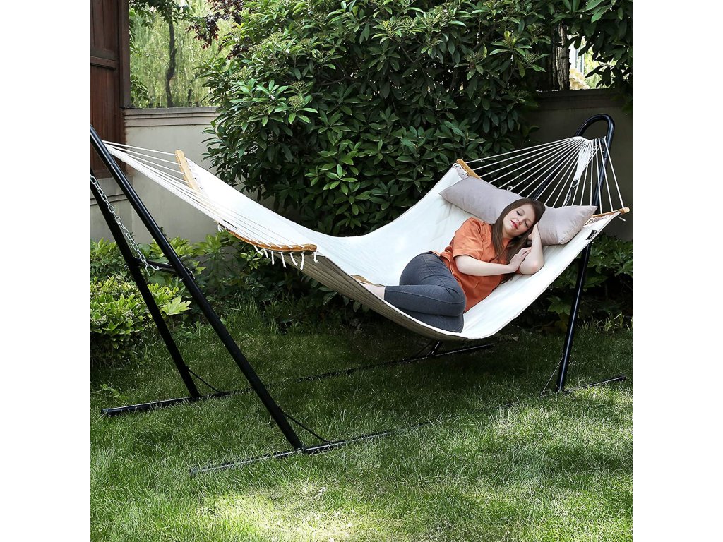 JSME JINÍ: Aby byla houpací síť stabilnější, používáme zakřivené bambusové rozpěrné tyče namísto běžných rovných; vyzkoušet, je stabilnější a bezpečnější než kdykoli předtím;VZÍT SI DEN LENOŠENÍ: Na této pohodlné manželské posteli o rozměrech 200 x 140 cm si opřete hlavu o měkký polštář s připevnitelným polstrováním, natáhněte ruce a nohy a nechte všechnu únavu zmizet. prošívaná houpací síť s polyesterovou vatouPevnost se neztrácí: Tato houpací síť je vyrobena z odolné tkaniny 300D Oxford a vysoce pevných bambusových tyčí a unese až 225 kg; užijte si chvíle, kdy se v této útulné houpací síti můžete přitulit ke svým milovaným.Vezměte si ji na cesty: Přestože je široká 140 cm, můžete jednoduše stisknout zacvakávací tlačítko, oddělit každou tyč na 2 části a sbalit houpací síť do rozměru pouhých 77 x 25 x 16 cm; snadno ho uložíte do kufru a stane se skvělým pomocníkem na rodinném výletě nebo pikniku;CO ZÍSKÁTE: Stabilní houpací síť se zakřivenými rozpěrkami, měkkým polštářem, přenosnou konstrukcí a maximálním pohodlím, která promění vaši zahradu nebo dvorek v lázeňské útočiště.| Kategorie: | Houpací sítě |