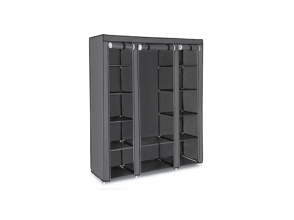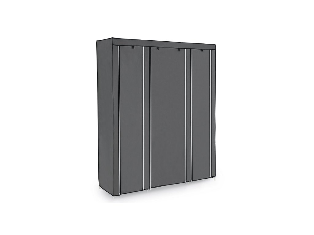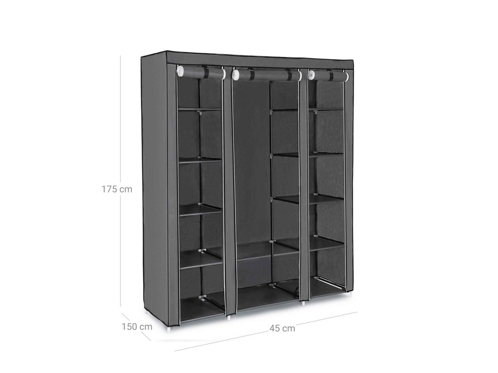 Přenosná šatní skříň, skládací skříň, organizér na oblečení s tyčí na zavěšení, police, látkový potah, do ložnice, šatny, 150 x 45 x 175 cm, šedá.